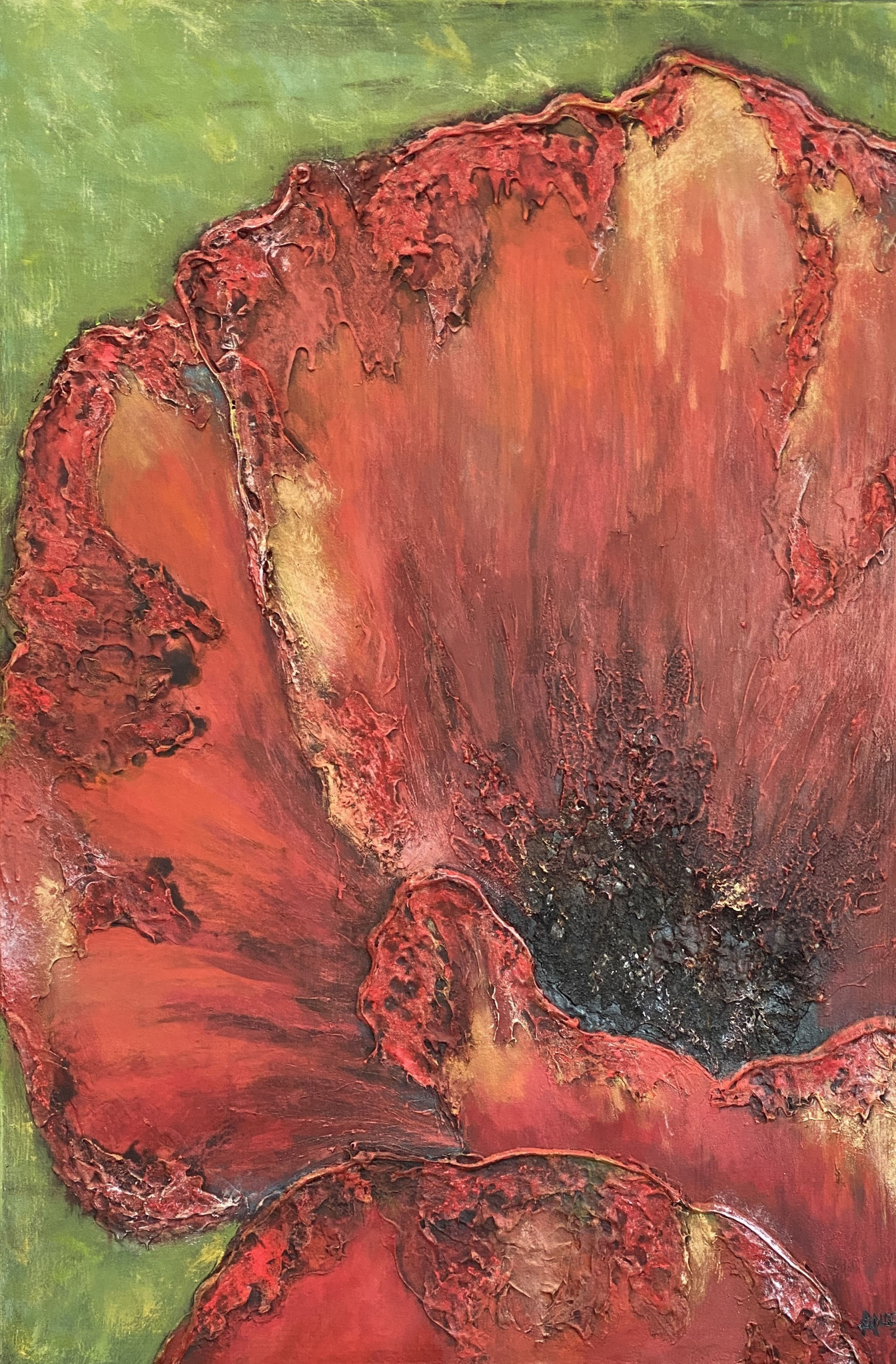Schilderij Mixed Media Klaproos Bloem Structuur