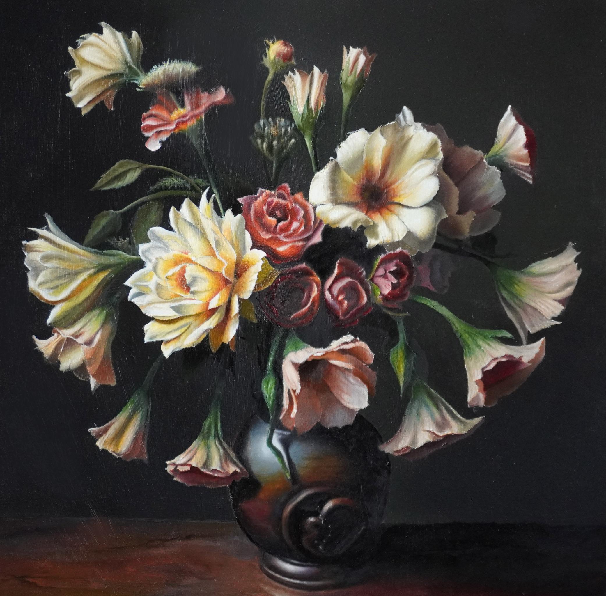 Ik schilder stillevens in olieverf. In licht en schaduw zoek ik naar stilte en betekenis, voorbij het gewone – naar dat wat verborgen ligt.