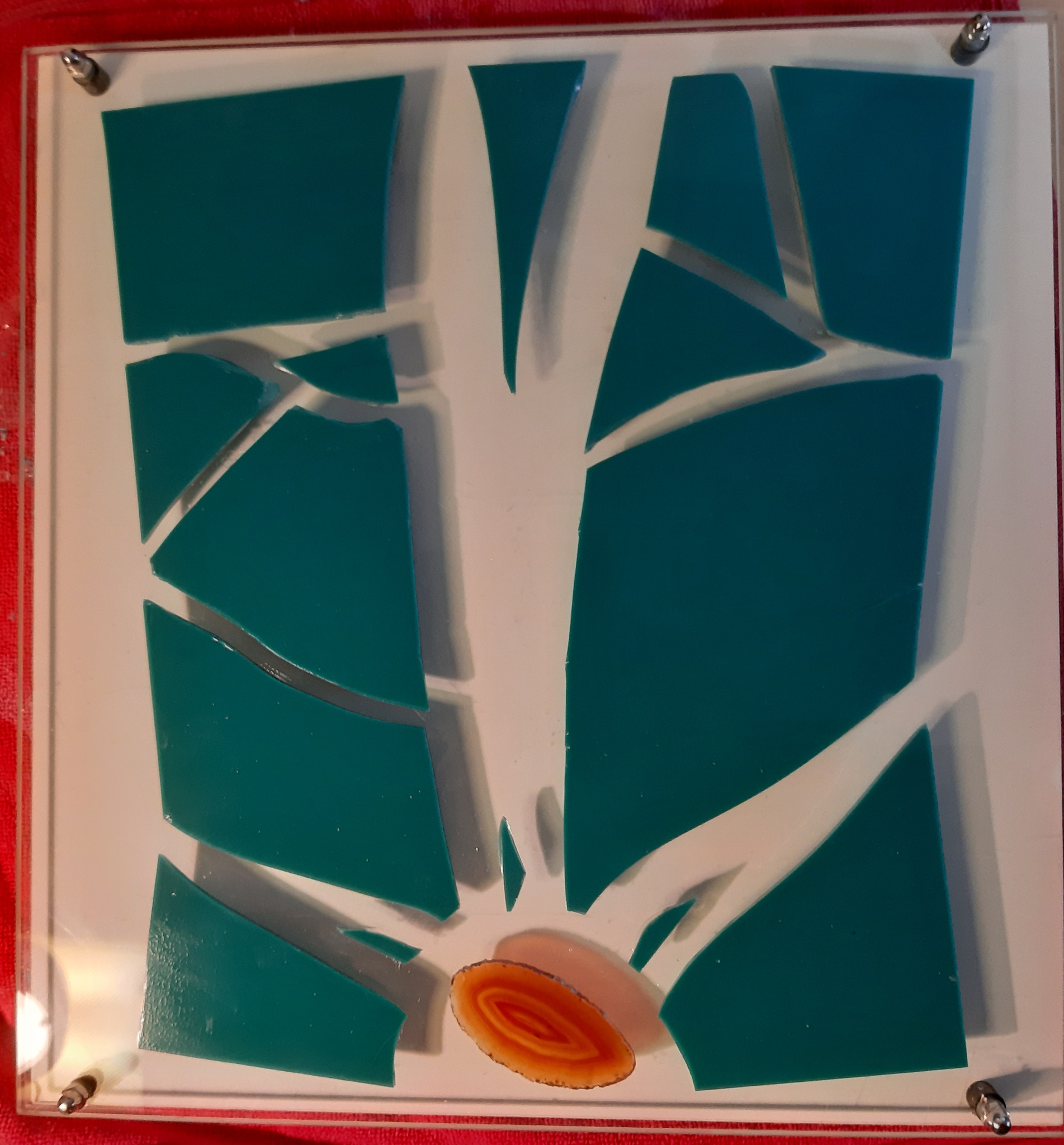 Geinspireerd door de recente vulkaanuitbartsingen. Door de afstand tussen paneel en glas krijgt het licht een kans om mee te spelen.