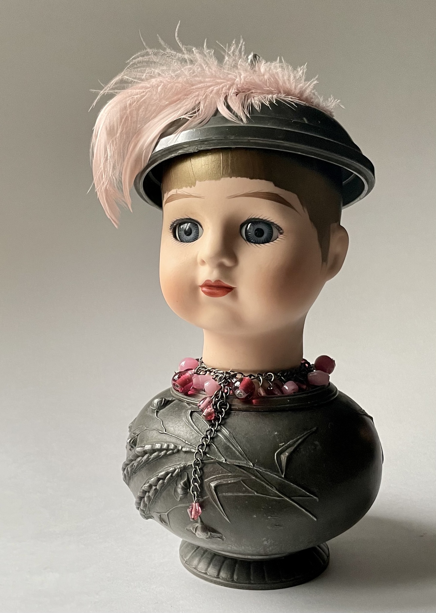 Dit porseleinen poppenhoofdje heb ik een nieuw leven gegeven. Assemblage