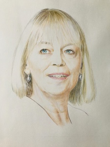Portret van Annelies getekend in kleurpotlood