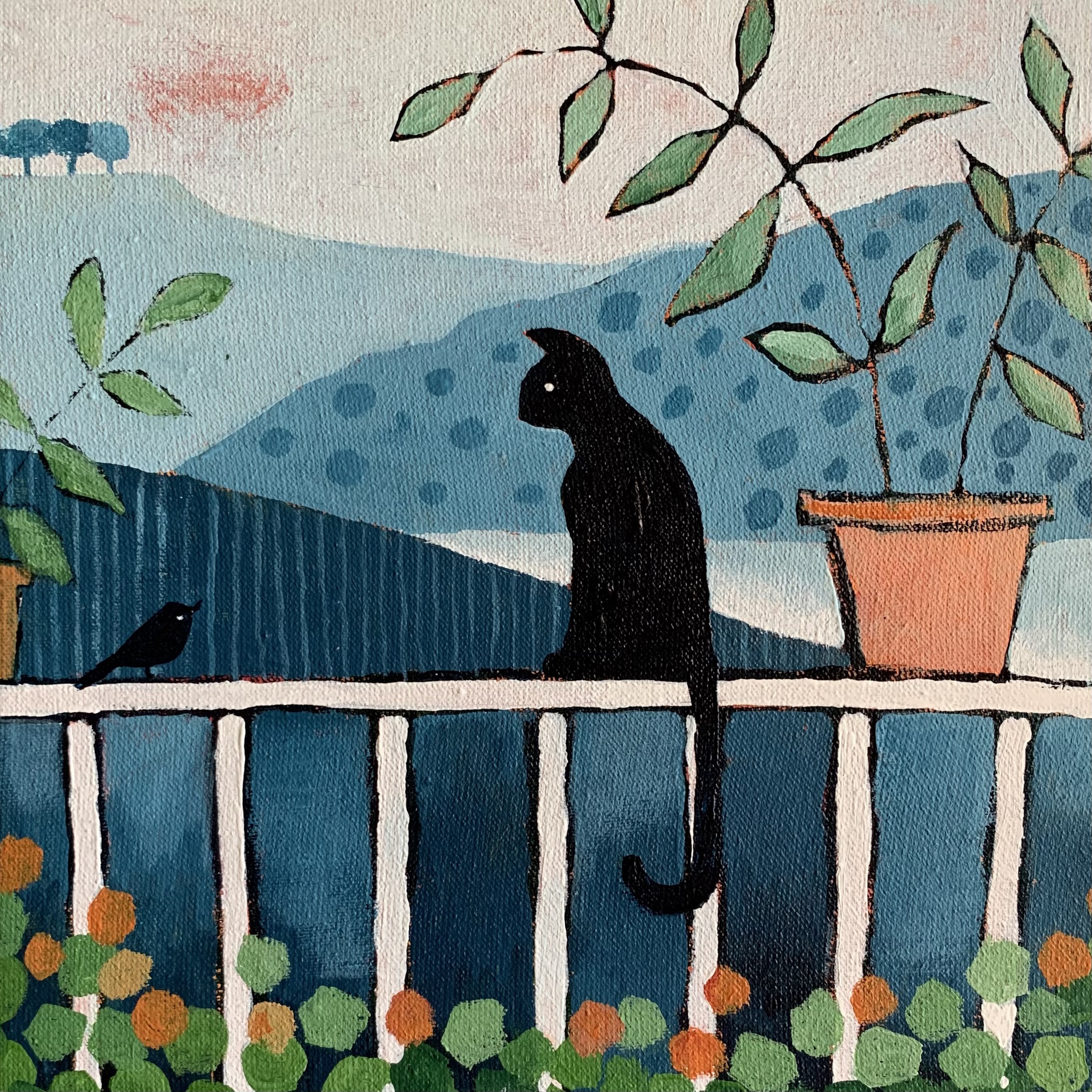 Schilderij Landschap Vogel Bloemen Tuin Kat Painting Bomen Plant Landscape Birds Flowers Cat Tree Gemälde Garden Fleurs Peinture Chat Jardin Tableau Katze Oiseau Fogel