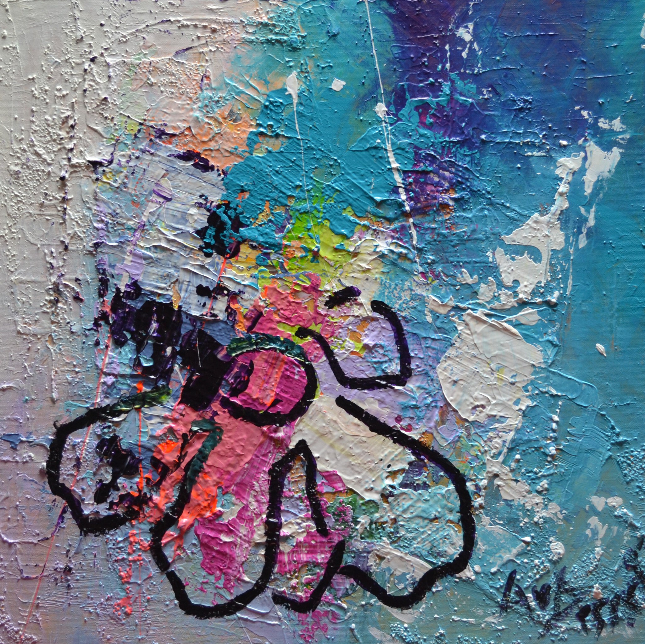"Veldbloem" Acryl op 3D doek zijkanten meegeschilderd