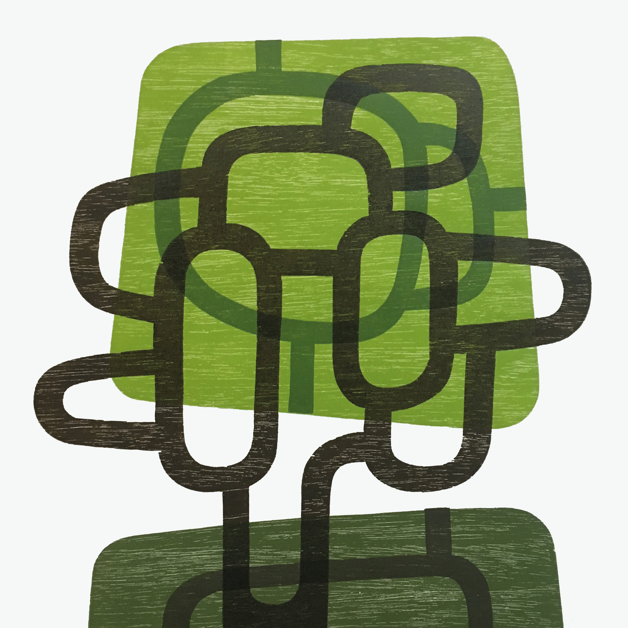 Holle boom - Hollow Tree Houtdruk - sjabloondruk op papier, 5 kleuren, oplage 4.