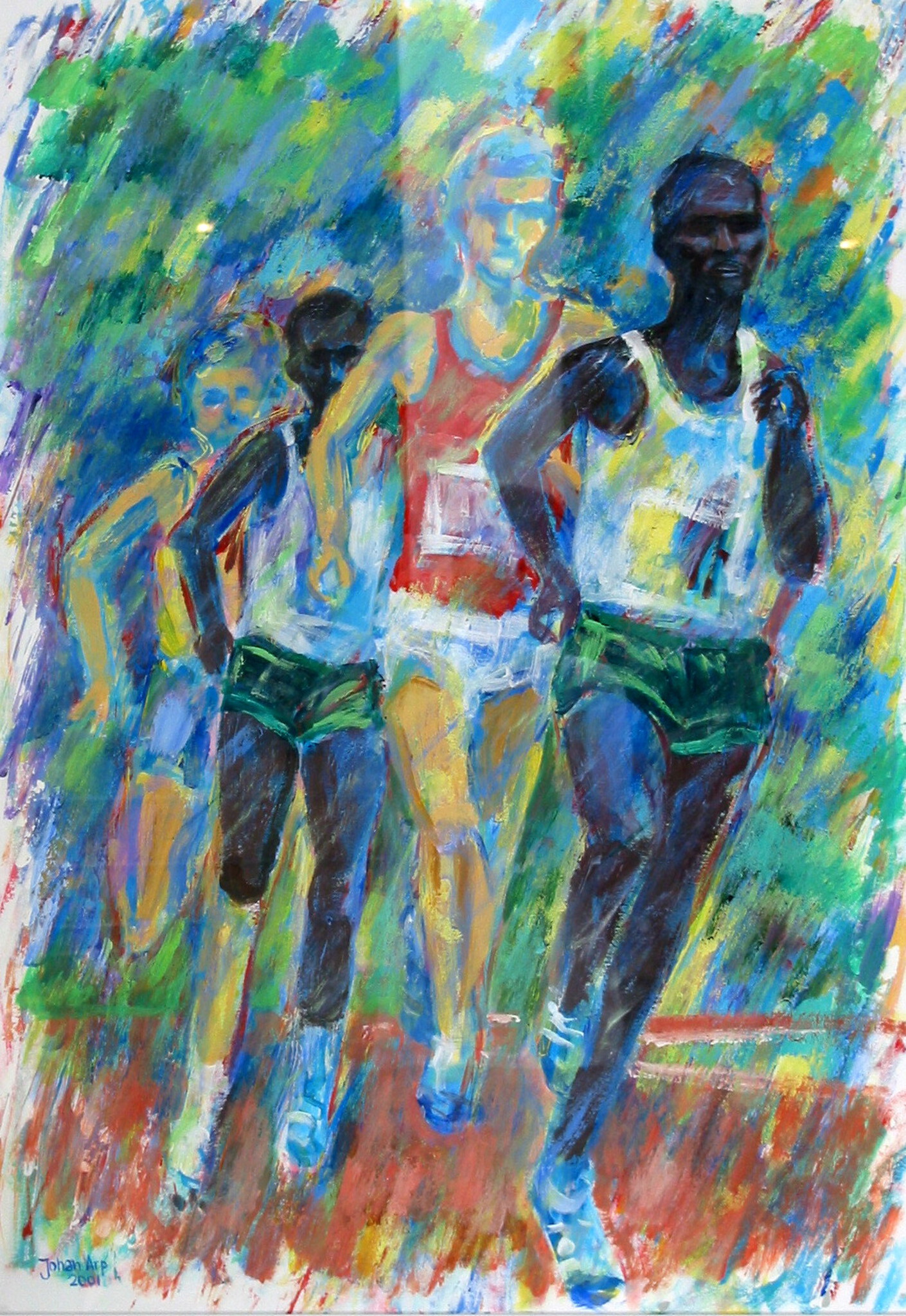 Johan Arp (1946) schildert voornamelijk expressionistisch, gebruikt meestal acrylverf, maar is voortdurend aan het experimenteren met andere (verf)materialen en mogelijkheden o.a. grafiek. Onderwerpen zijn landschappen en stadsgezichten, Afrika, portretten, sport, maar ook meer abstracte werken. Daarbij is een spanningsveld tussen het ambachtelijke van de ontwerper en het pure schilderen van de vrije kunstenaar. Vanaf 2018 werkt Johan niet meer in opdracht.
