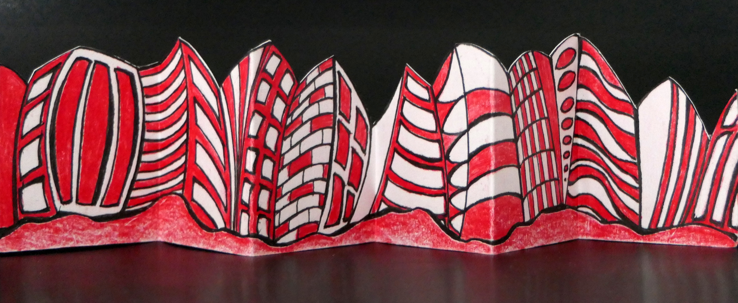 Wit Rood Architectuur Vouwen Gebouwen Uitgesneden Gevouwen Leporello Harmonicaboekje