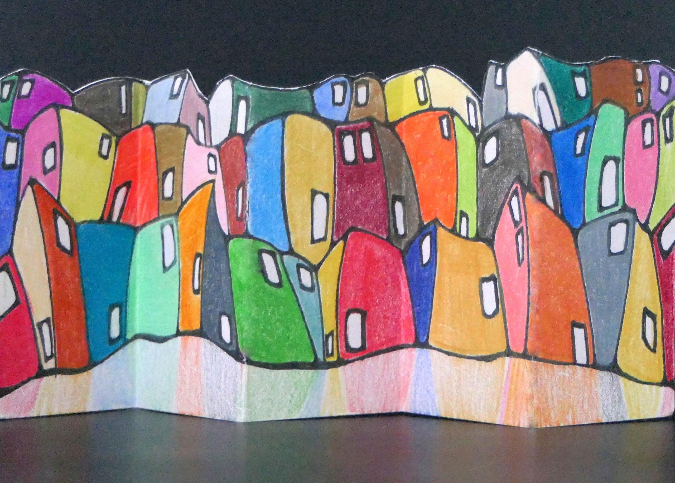 Leporello Harmonicaboekje Gebouwen Architectuur Kleur Pen Potlood Wonen Uitgesneden