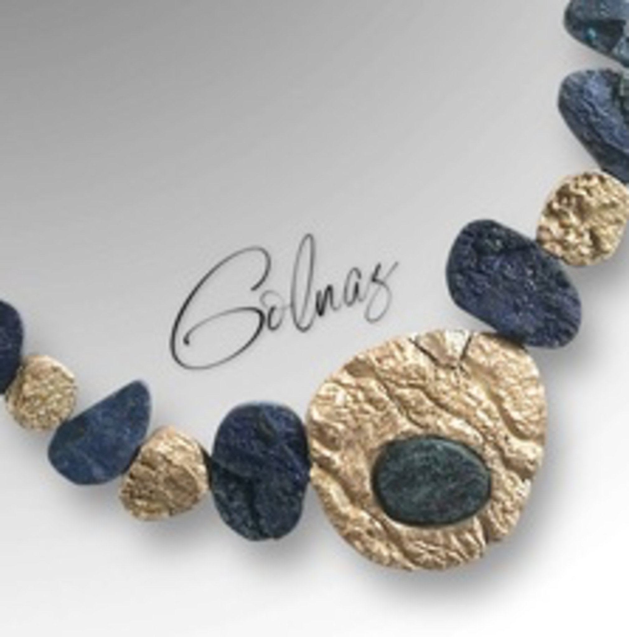 Bronzen en Dumortiet edel steen ketting met een Bronzen en Dumortiet hanger 6x5 cm.