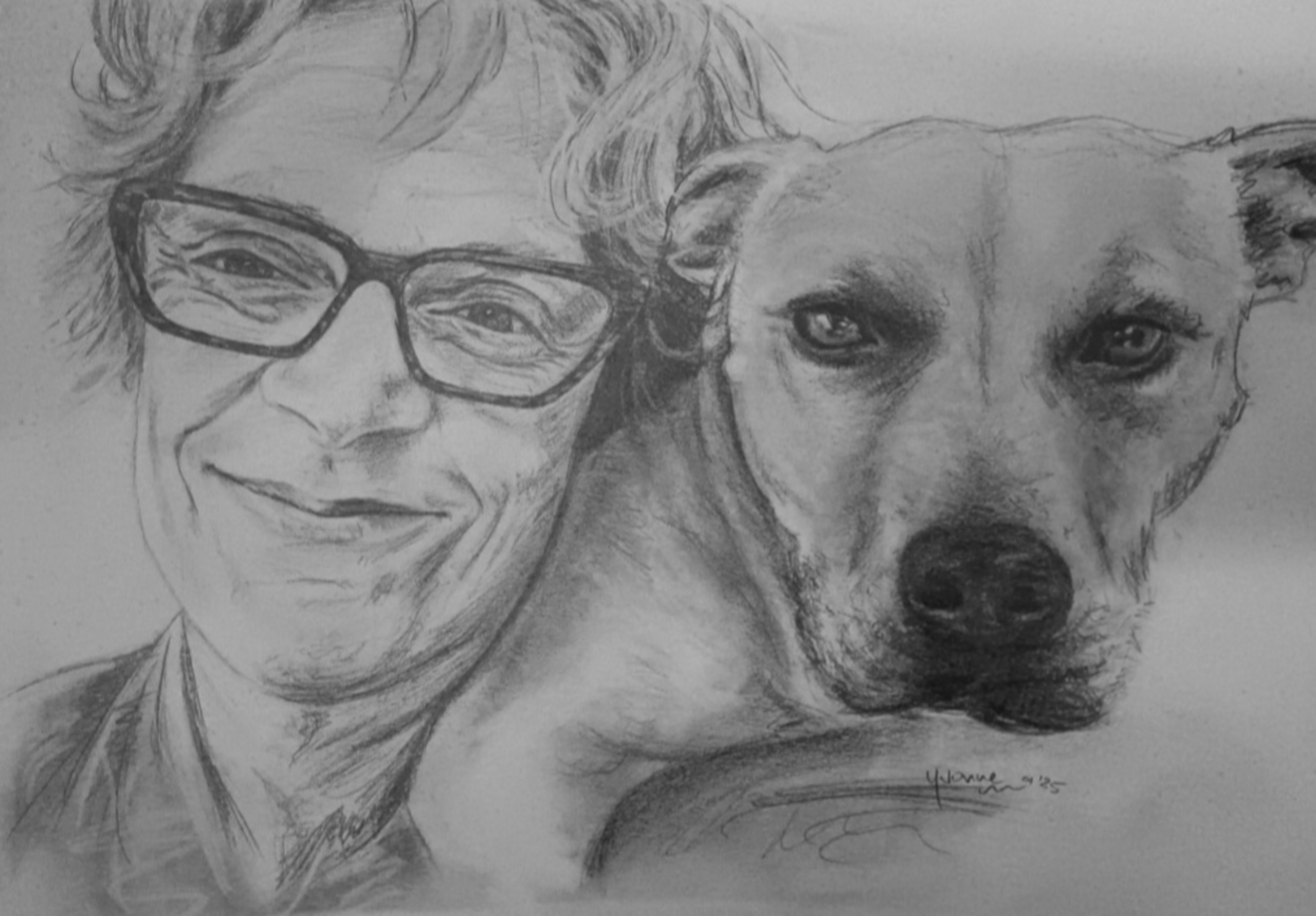 Yvonne (1970), Den Bosch, tekent portretten van foto. Zwart-wit, aquarelpotlood, realistisch of met extra.