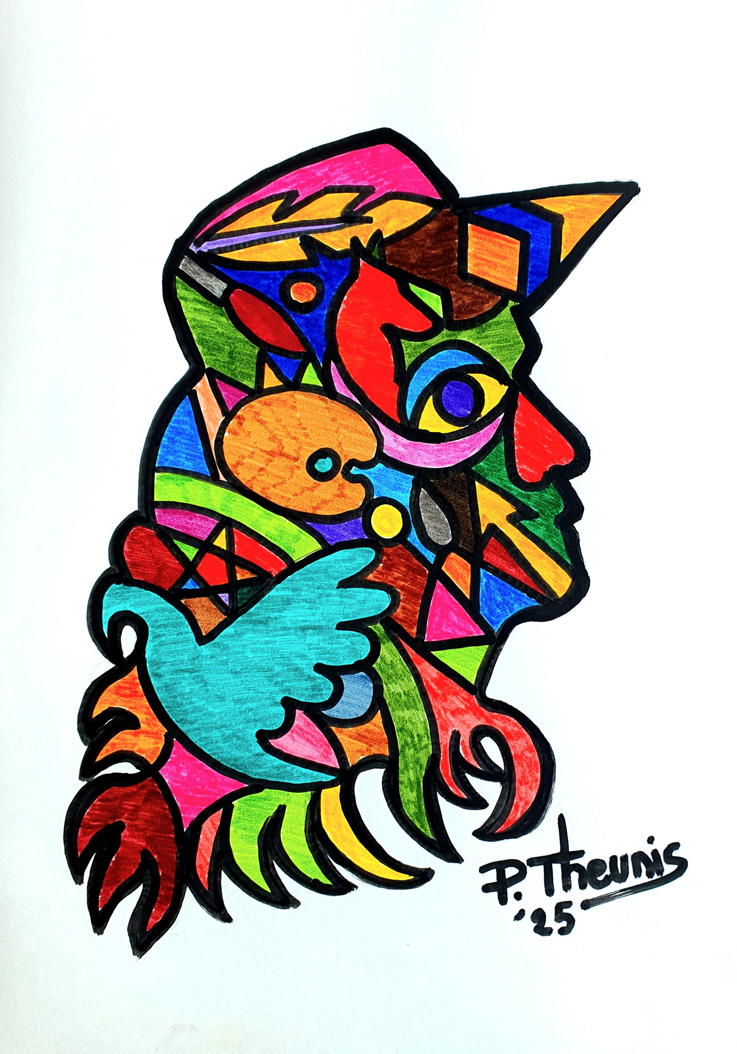 zoek meestal mijn inspiratie in de levensfilosie van de oorspronkelijke inwoners van de Verenigde Staten. Probeer abstractie en figuratieve onderwerpen in één schilderij te harmoniseren. dat kan zowel, dier, portret, model of voorwerp zijn... werk meestal met acryl- en olieverf in combinatie met allerlei materialen die voorhanden zijn en het schilderij kan verrijken. Verder probeer ik pop-art ook een plaats te geven in mijn artistieke bezigheden. Het blijft steeds een boeiende zoektocht naar harmonie in kleur en vormen.