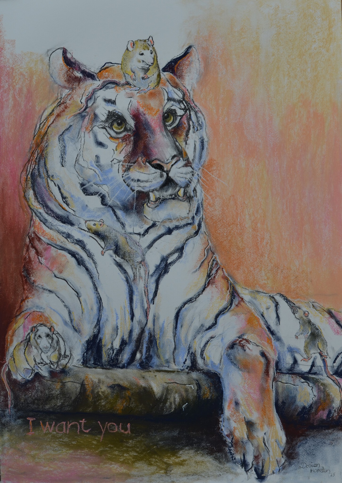 Pastel Tijger Rat Ratten Roze Geel Verbaasd Liggend