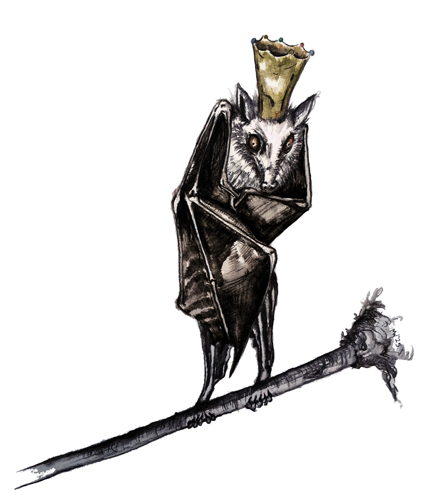 Koning Nacht: de vleermuis. De wereld op haar kop? Aquarelpotloden en water op 300 grams aquarelpapier.