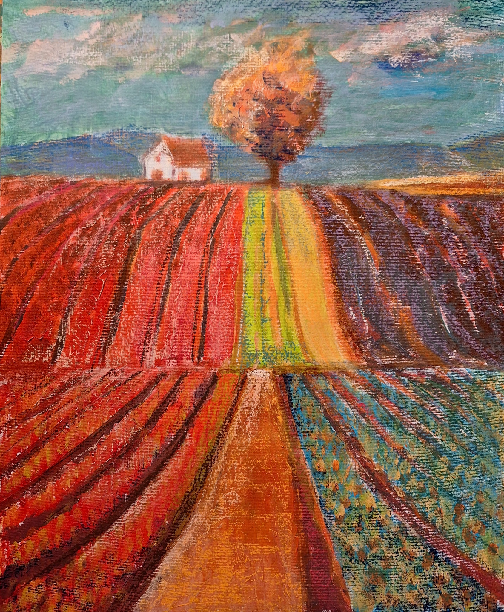 acrylverf en pastelkrijt op papier