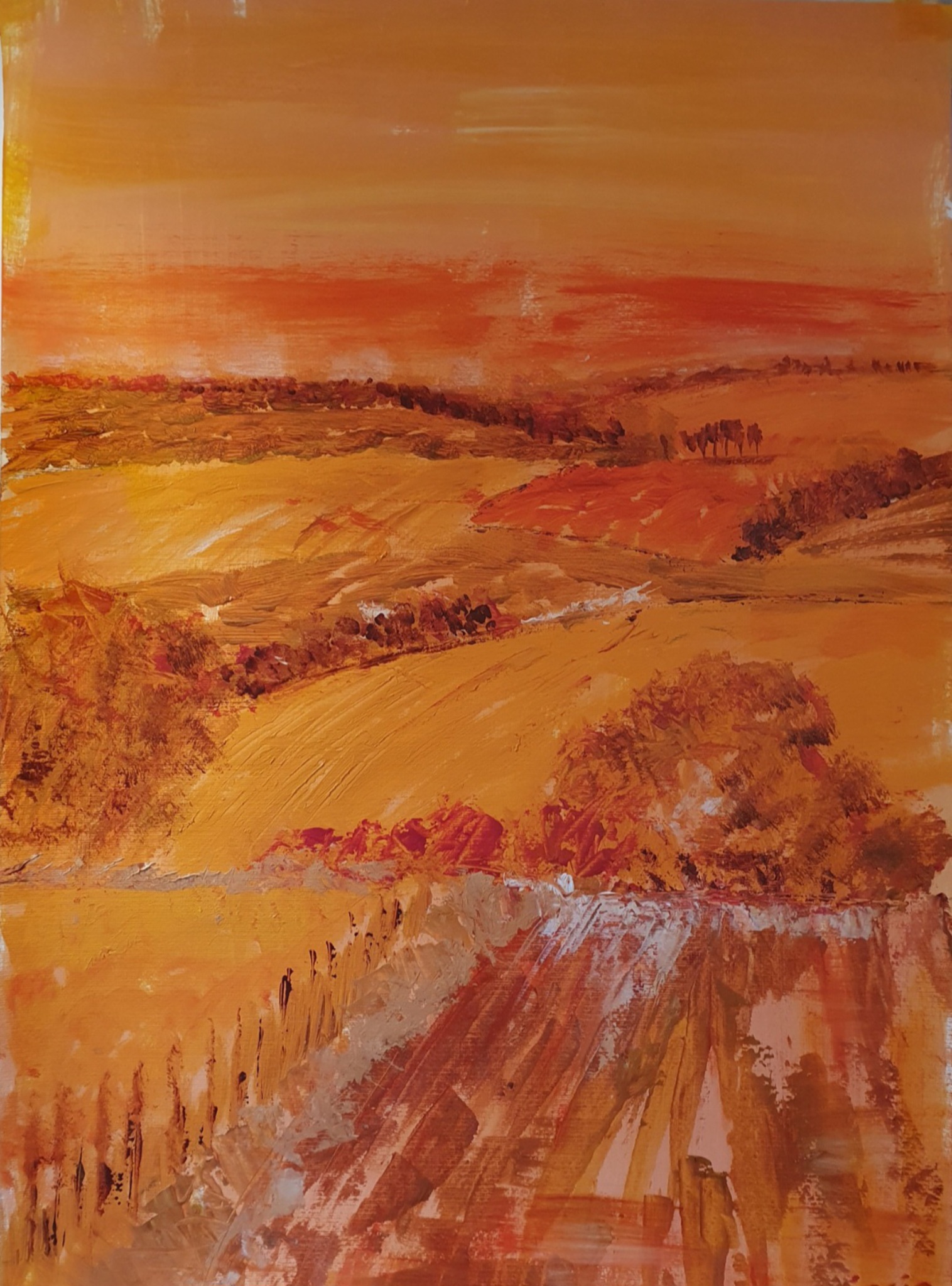 landschap geschilderd in acrylverf op papier
