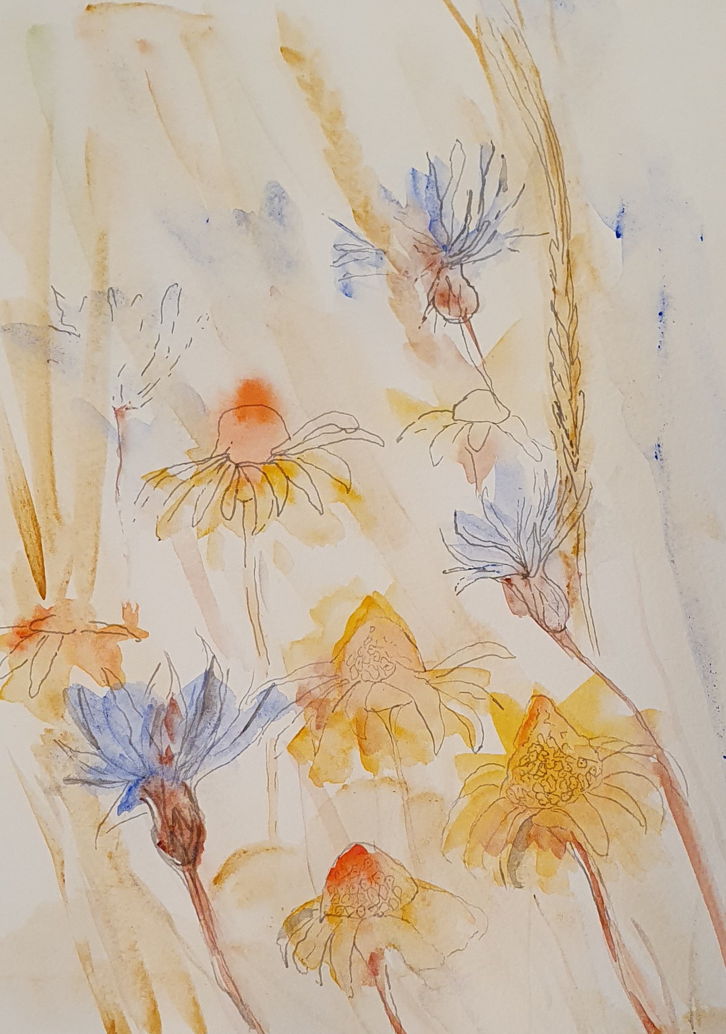 veldbloemen met aquarelverf en fineliner