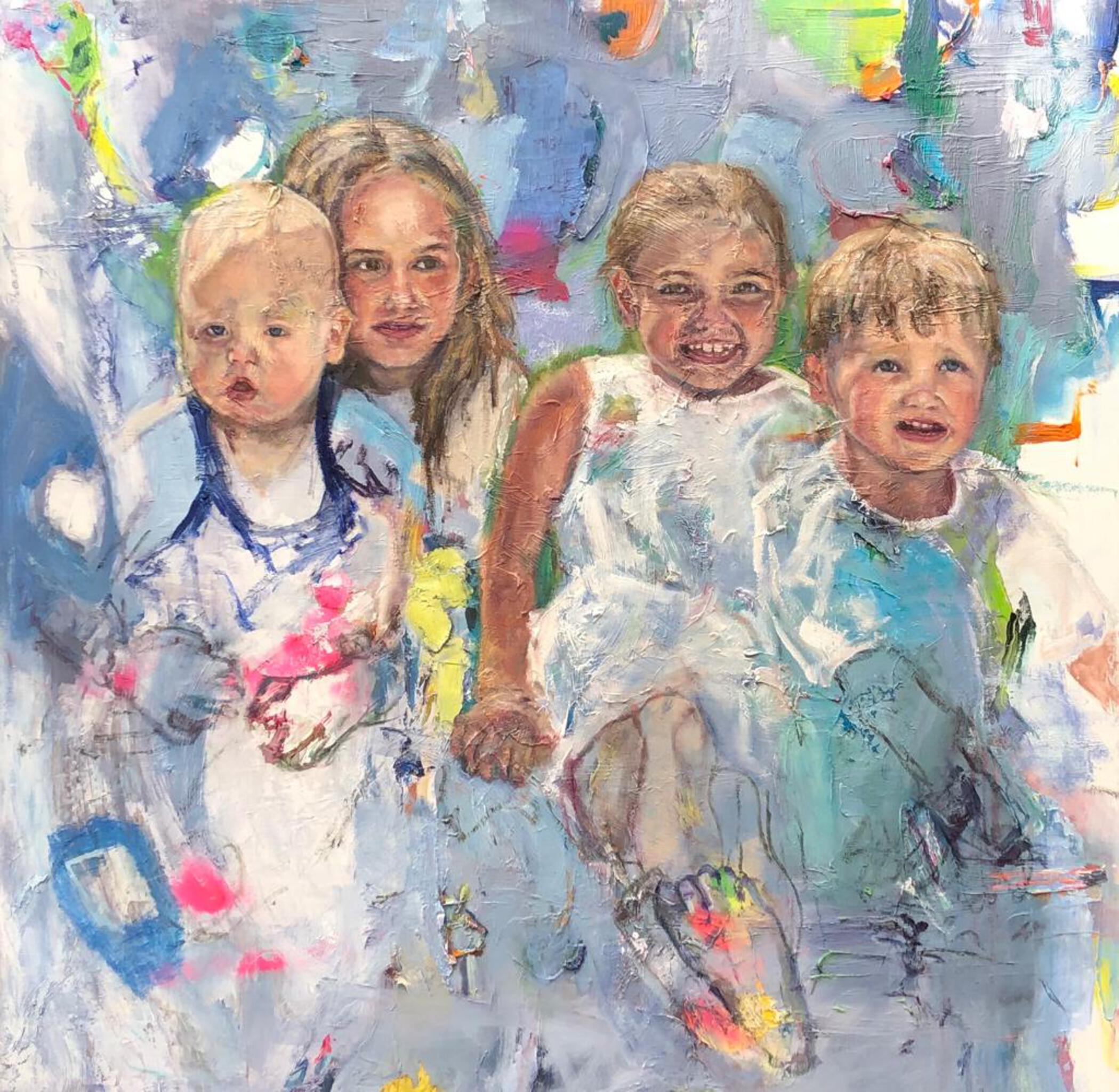 Portret Groepsportret In Opdracht Olieverf Acrylverf Stadslandschap Landschap Abstract