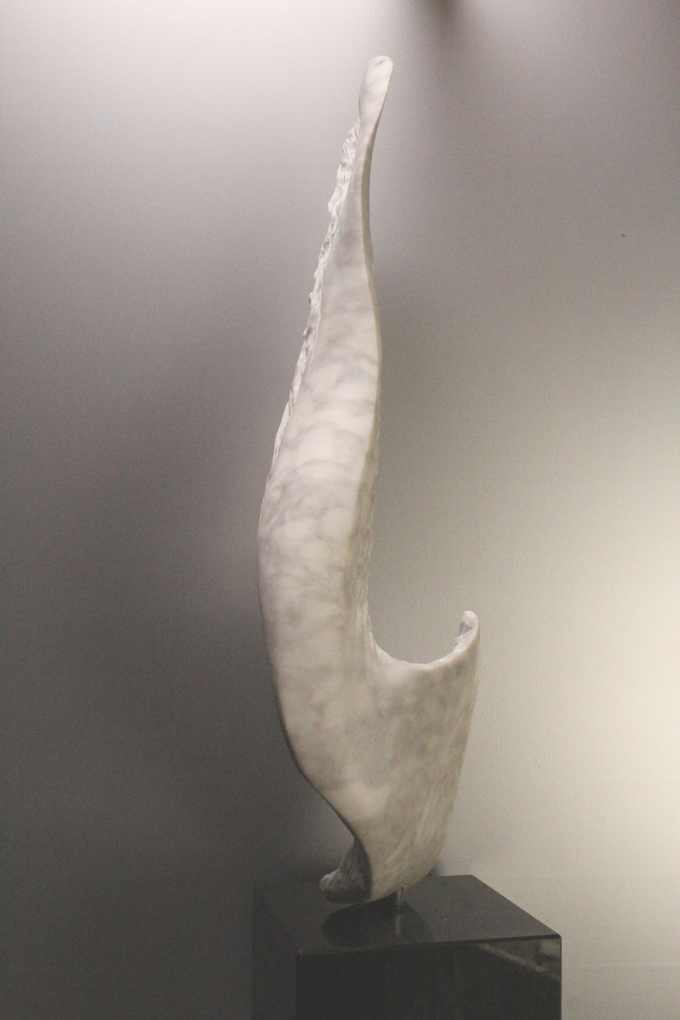 Abstarct beeld in carrara marmer Staat op punt in balans terwijl het beweegt
