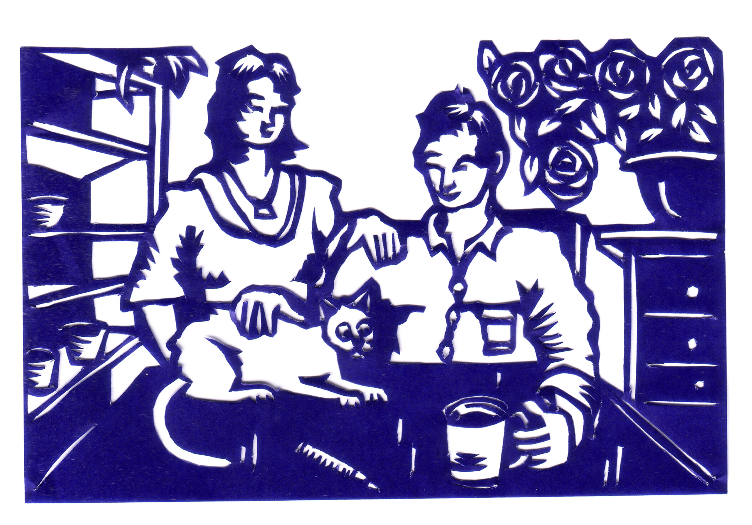 Utopia Mailart Knipkunst Knipwerk Papierknipkunst Decoupage Scherenschnitt Papercutout Knipsel Poes Kat Cat Koffie Coffee