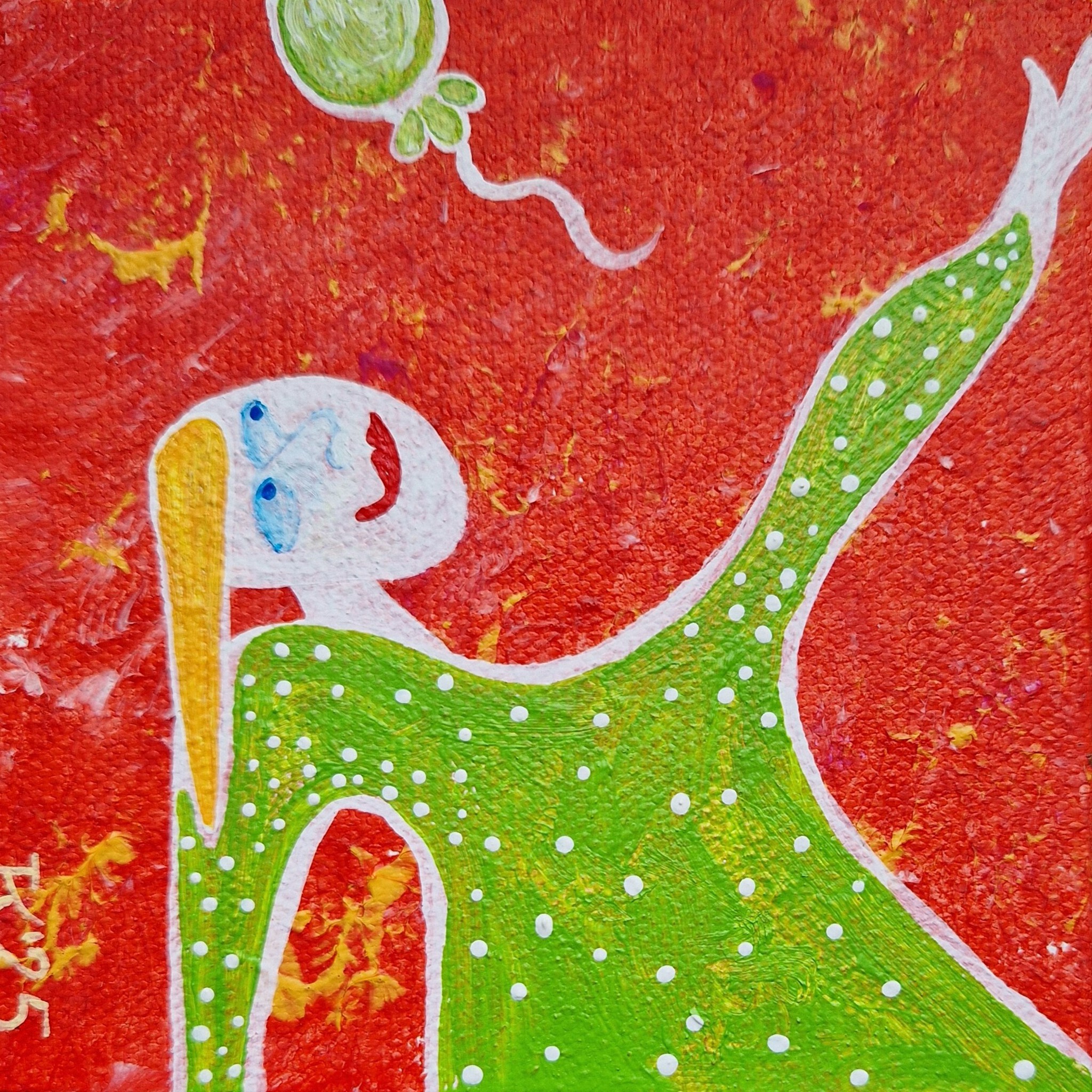 Acrylverf op katoen, 10 bij 10 cm, Pictoright. Werkje kan opgehangen worden. De prijs is exclusief verzendkosten.
