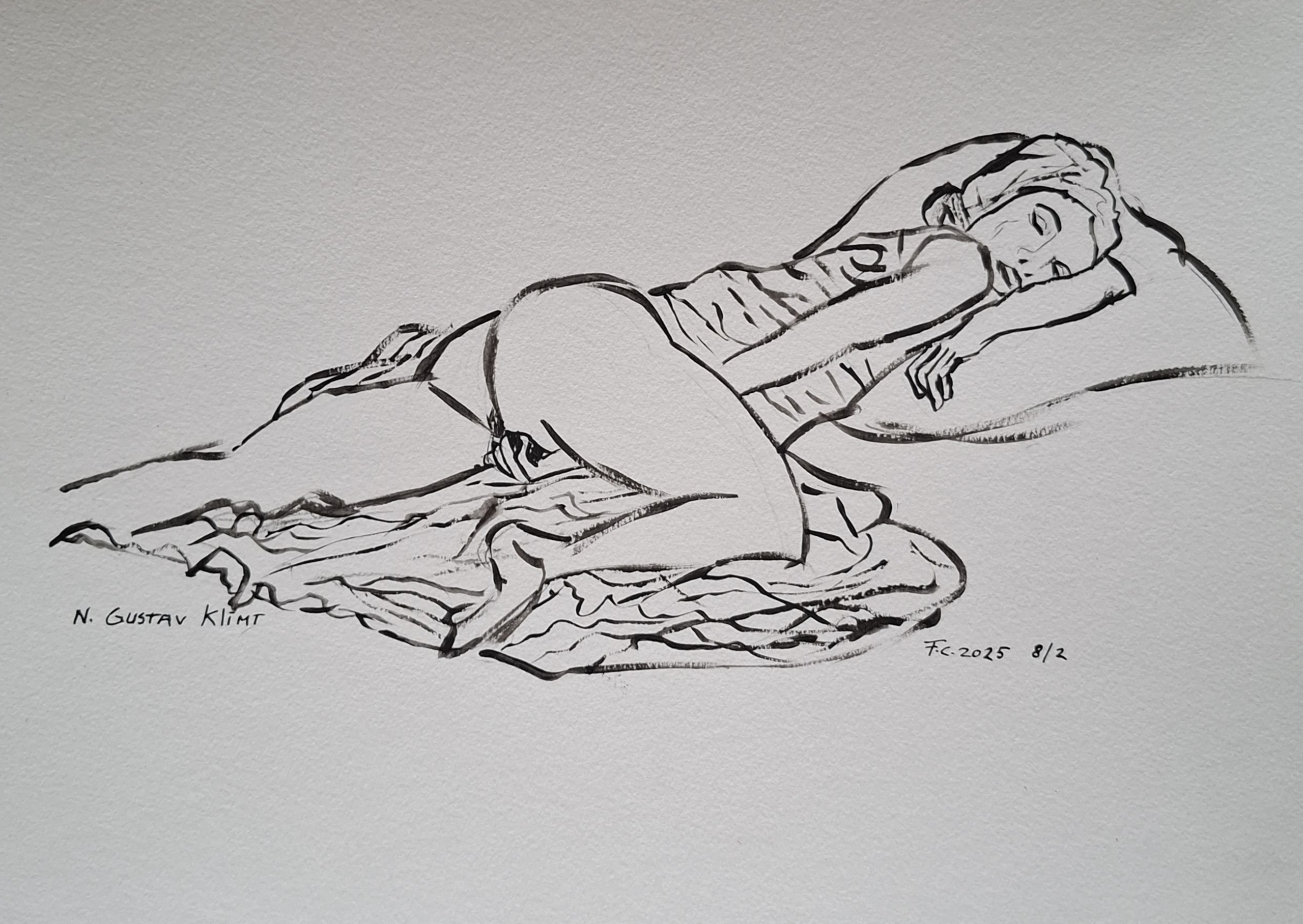 Naakt Schets Bed Erotiek Klimt Gustav Masturbatie