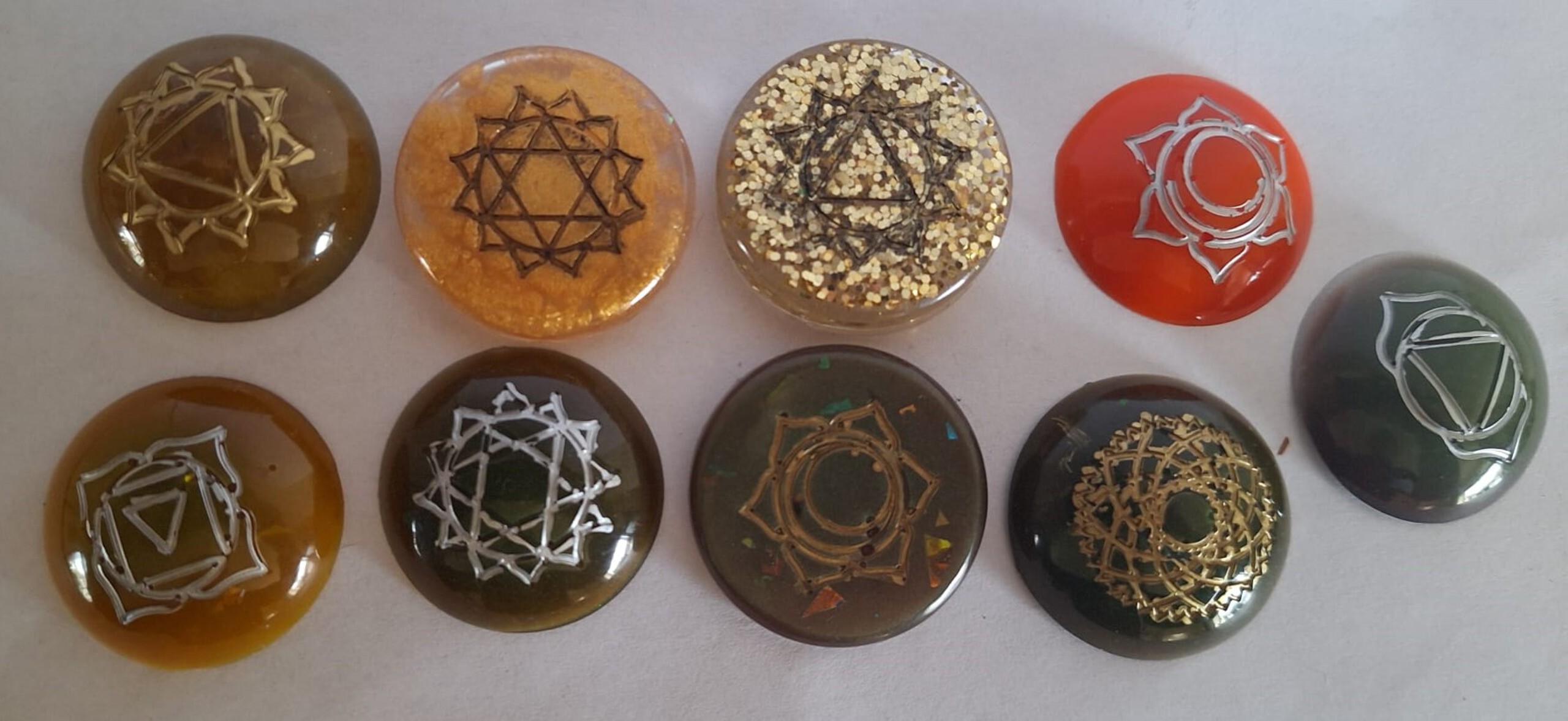 Spirituele stenen, diverse kleuren, ingekleurd met zilver en goud Bol en plat, niet alles dezelfde maat