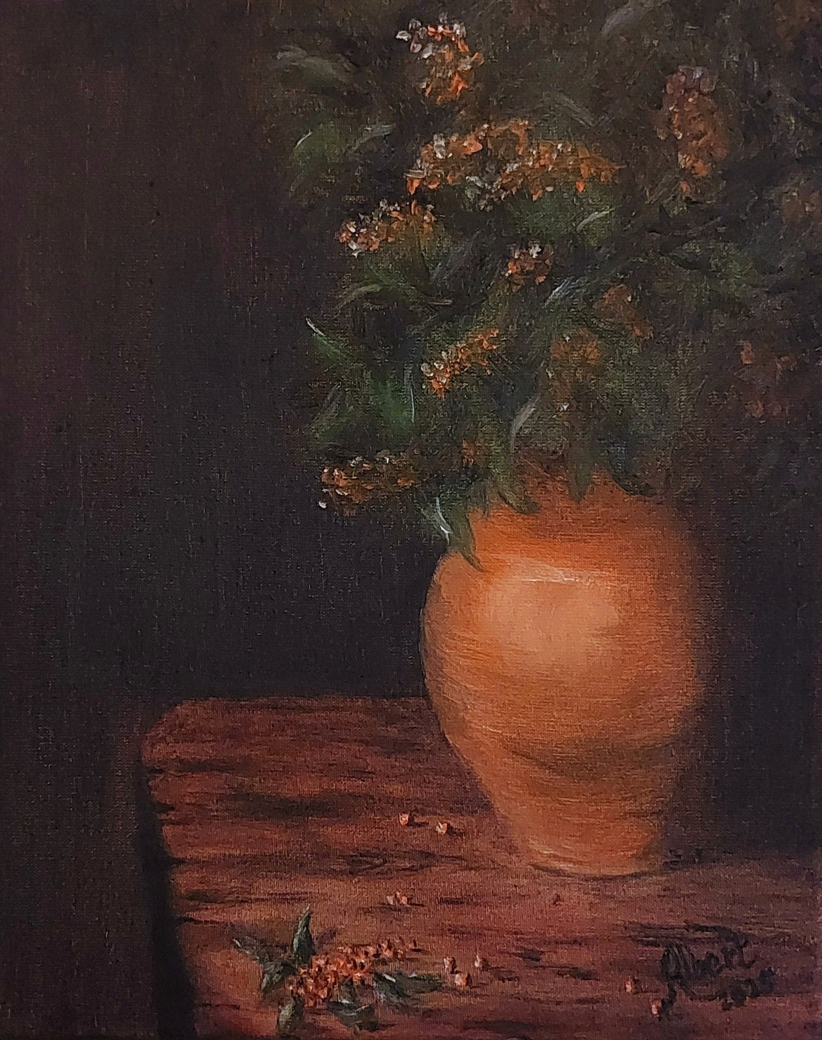 Vaas Realistisch Olieverf Doek Stilleven Tafel Besjes