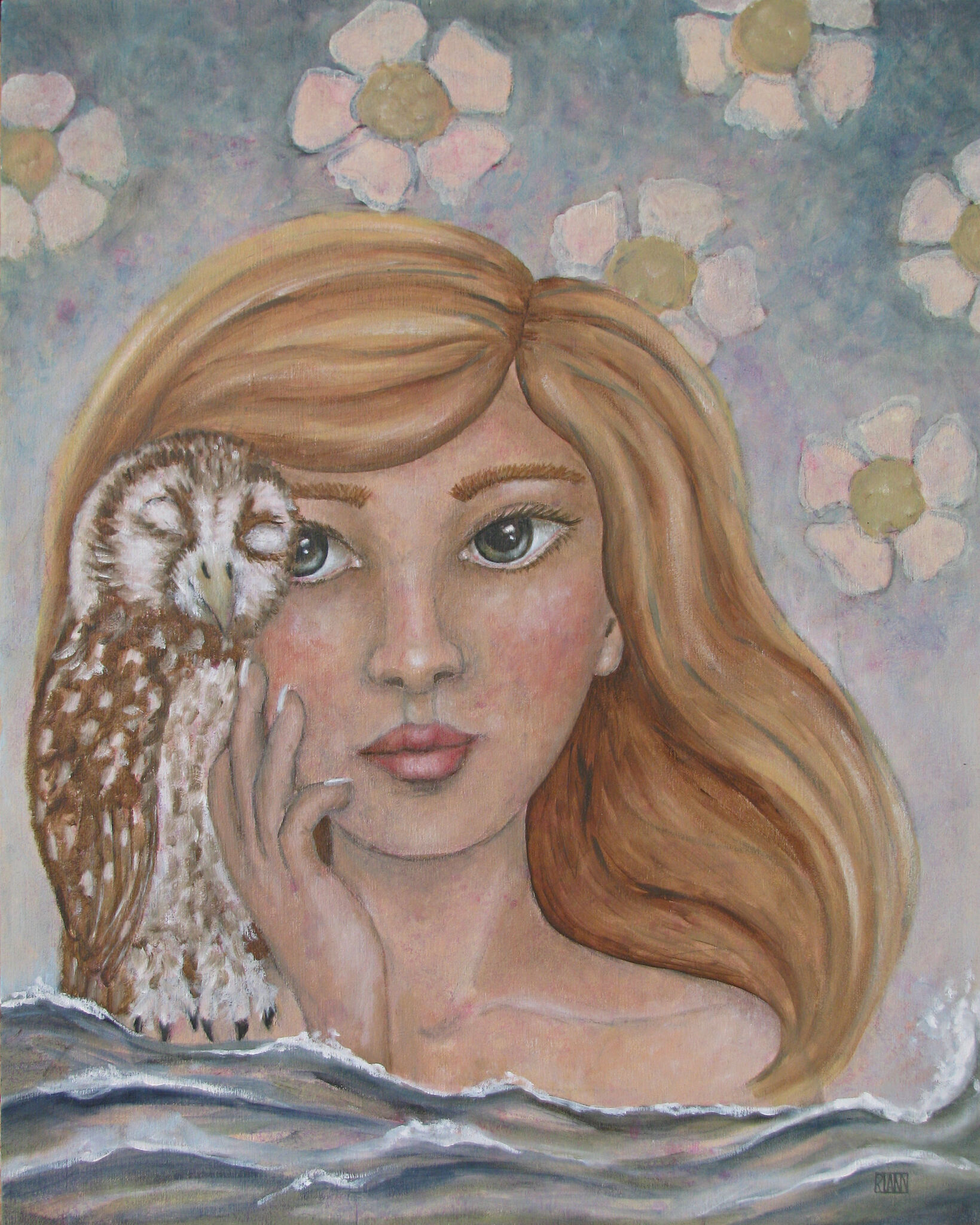 Meisje Zee Vogel Bloemen Vrouw Uil Lucht Blond Wijsheid Inzicht Bescherming Totem Beschermheer Talisman