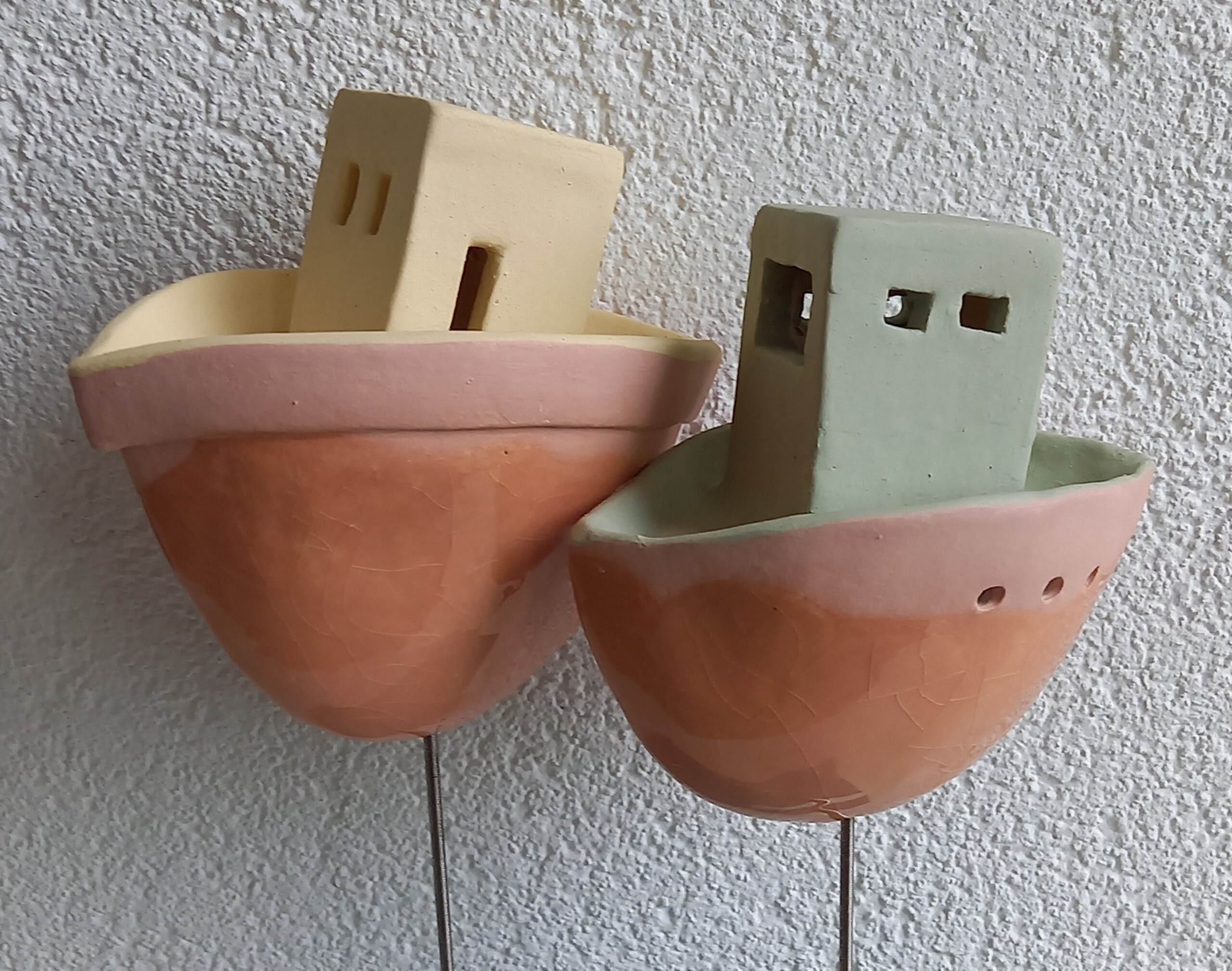 Twee kleine minimalistiche bootjes op standaard. Kunnen verschillend worden geplaatst.