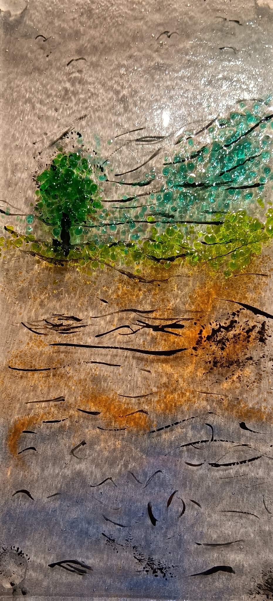 Glaswerk van Ed, diverse vormen en onderwerpen. Praktische expressie van onderwerpen in glas.