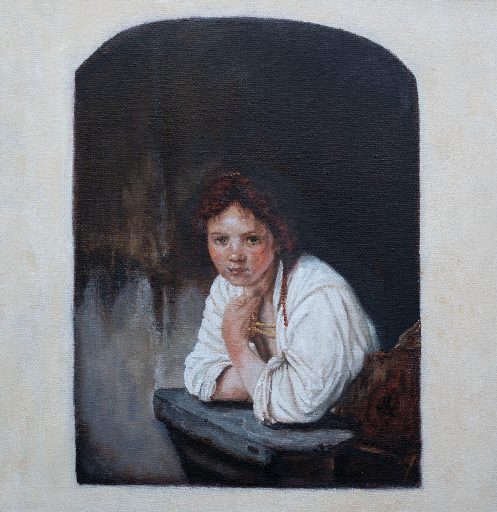 MEISJE LEUNEND OP DE VENSTERBANK