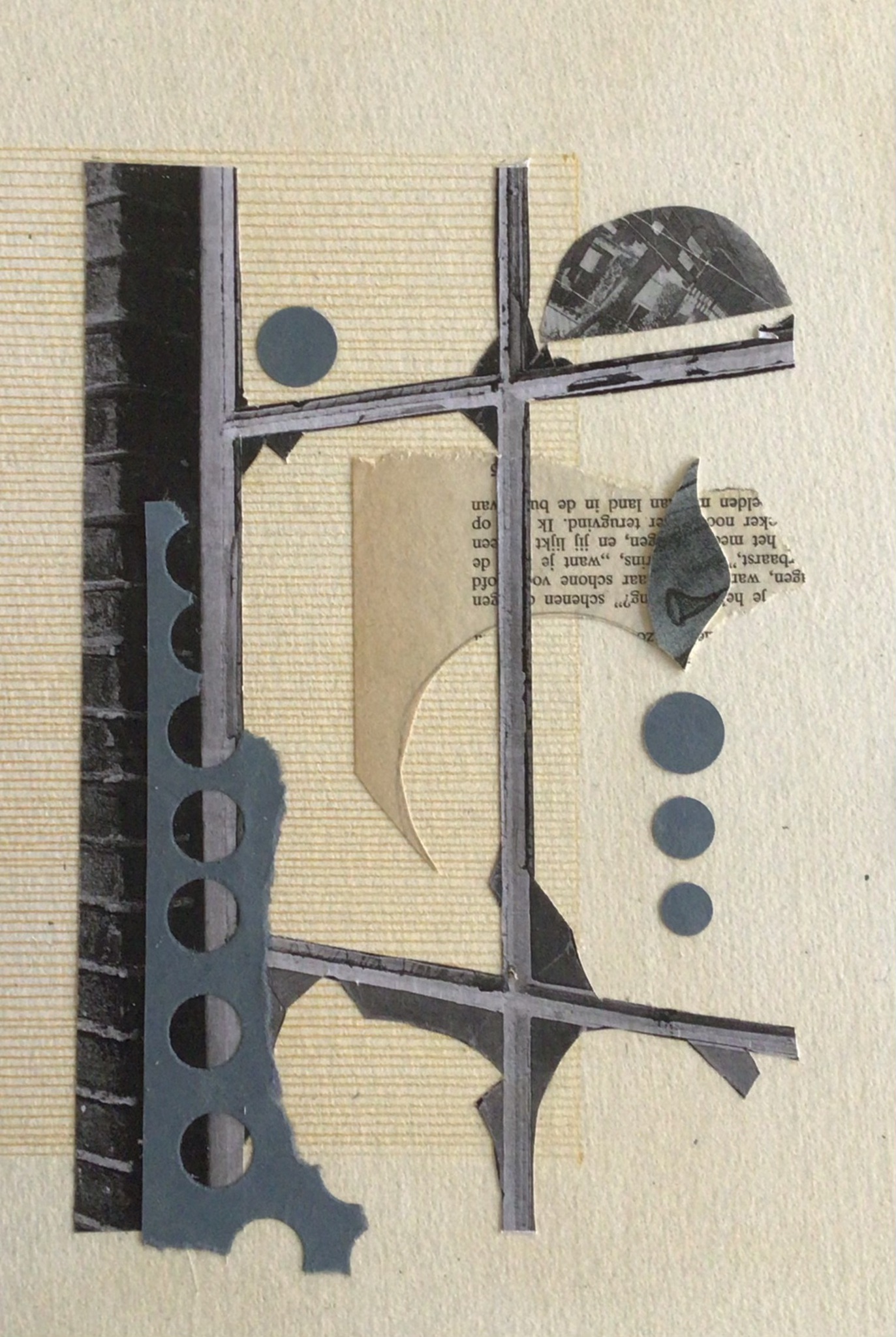 Collage Mixedmedia Abstract Raam Geel Blauw Vormen