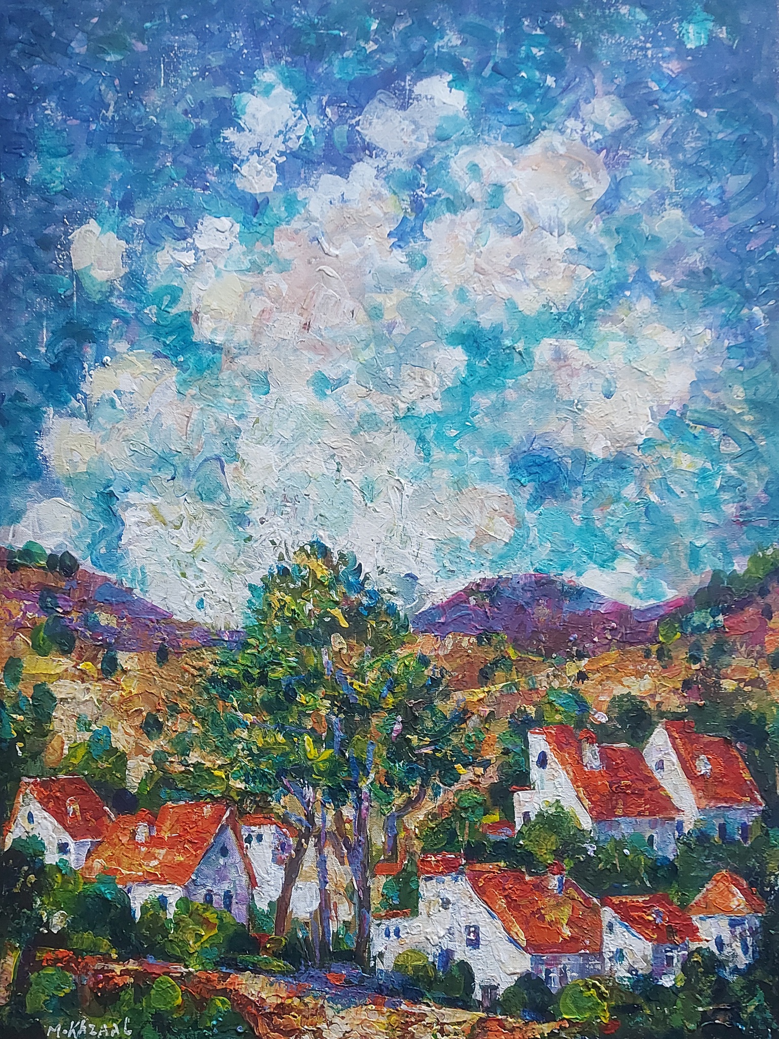 Mouafk Khzaal {1966} komt uit Syrië. Hij is zowel kunstenaar als tandarts. Zijn eerste solo tentoonstellingen vonden plaats in 2010 in Homs en Damascus en in 2014 in Libanon. In 2017 en 2018 in Huis Kernhem in Ede. In 2018 in Casteelse Poort museum in Wageningen.