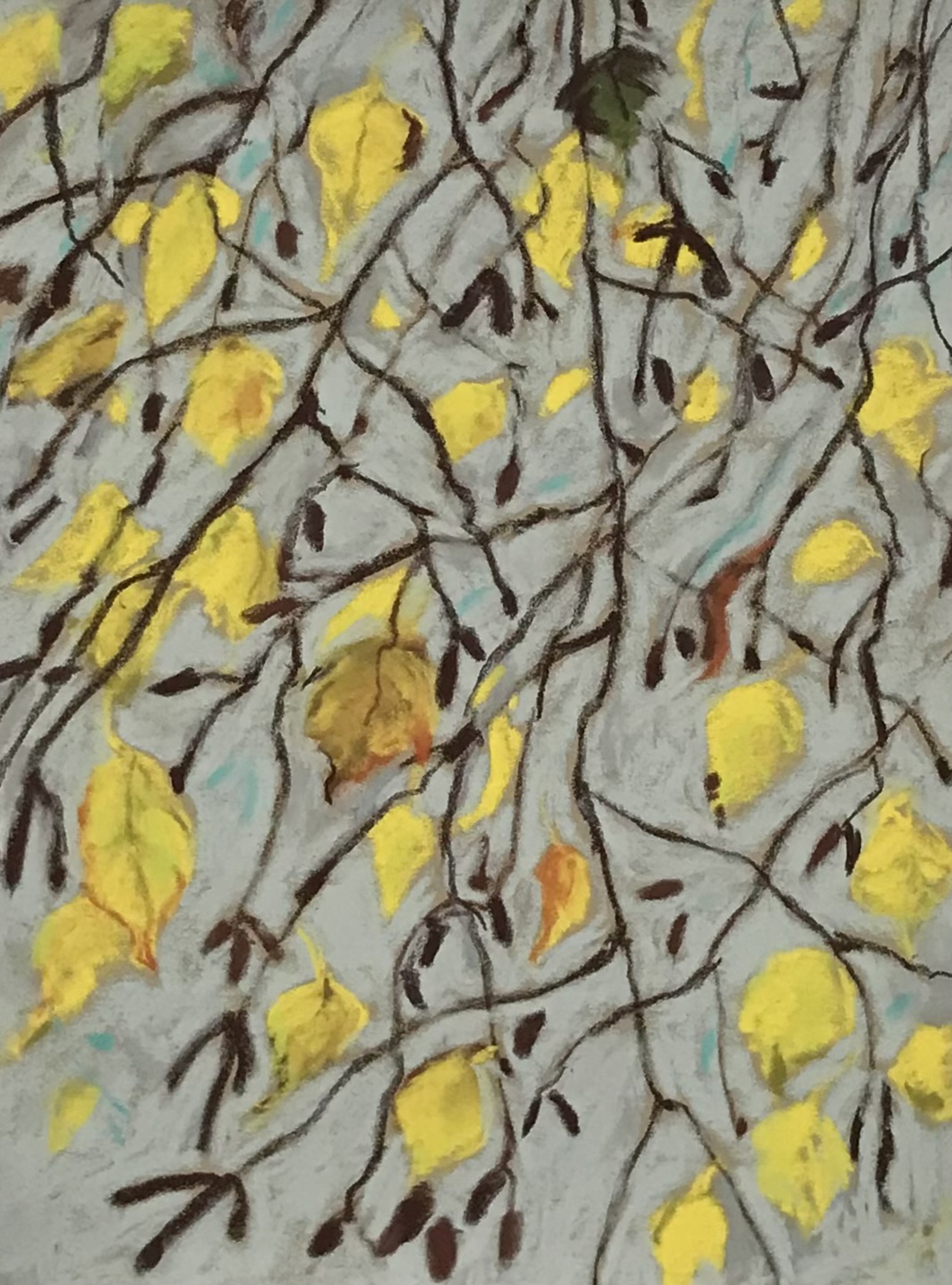 Een stukje van de hazelaar in herfsttooi. Een mooi grafisch spel, dat me blijft fascineren.