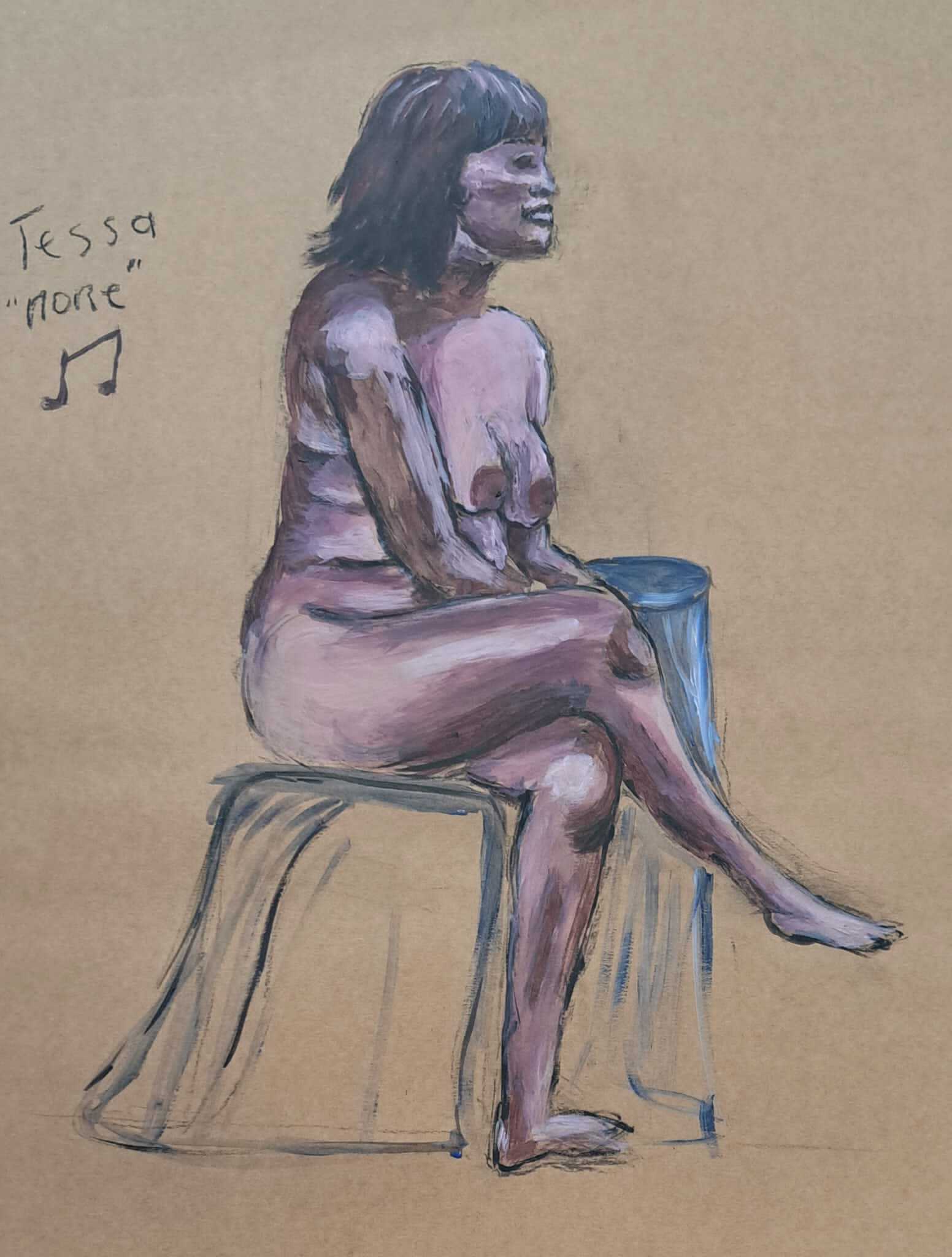 Mijn schilderij vertelt een verhaal van een persoon in emotie van angst, verdriet of boosheid. Elk persoon kijkt door zijn eigen bril en maakt zijn eigen verhaal. Dat is wat ik zo mooi vind!