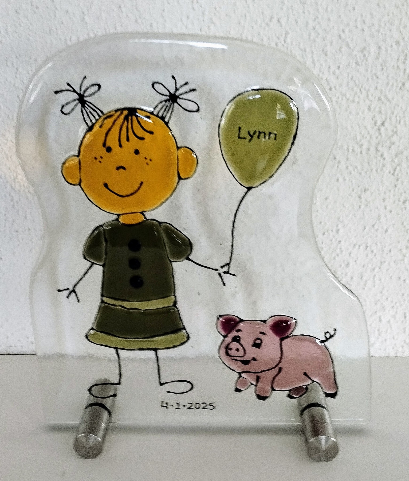 Meisje Abstract Glas Glasfusing Geboorte Vrolijk Varken Geboortetegel Glasversmeltingstechniek