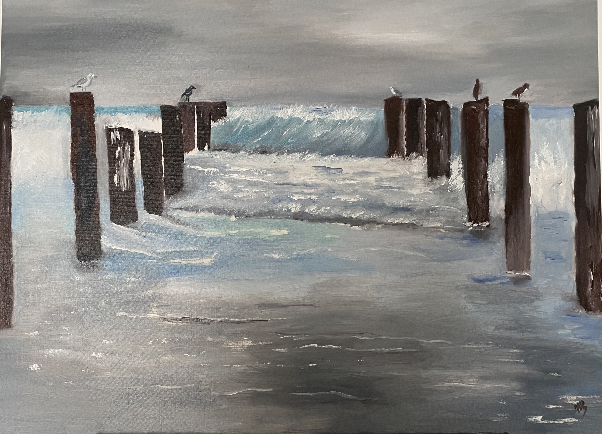 Golfbrekers Zee Olieverf Bozkunst