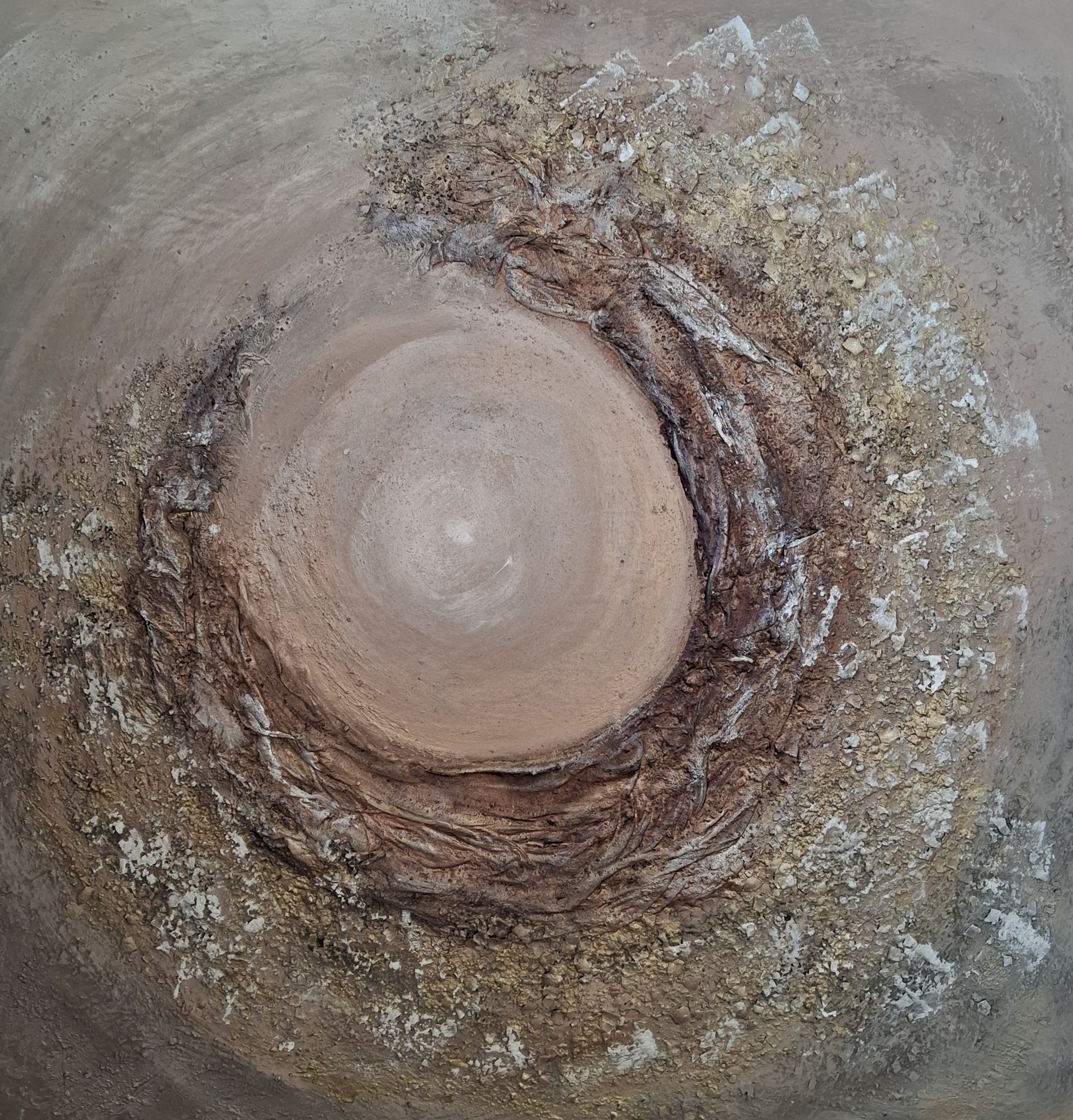 Cirkel in mixed media Kleuren taupe, bruin en goud