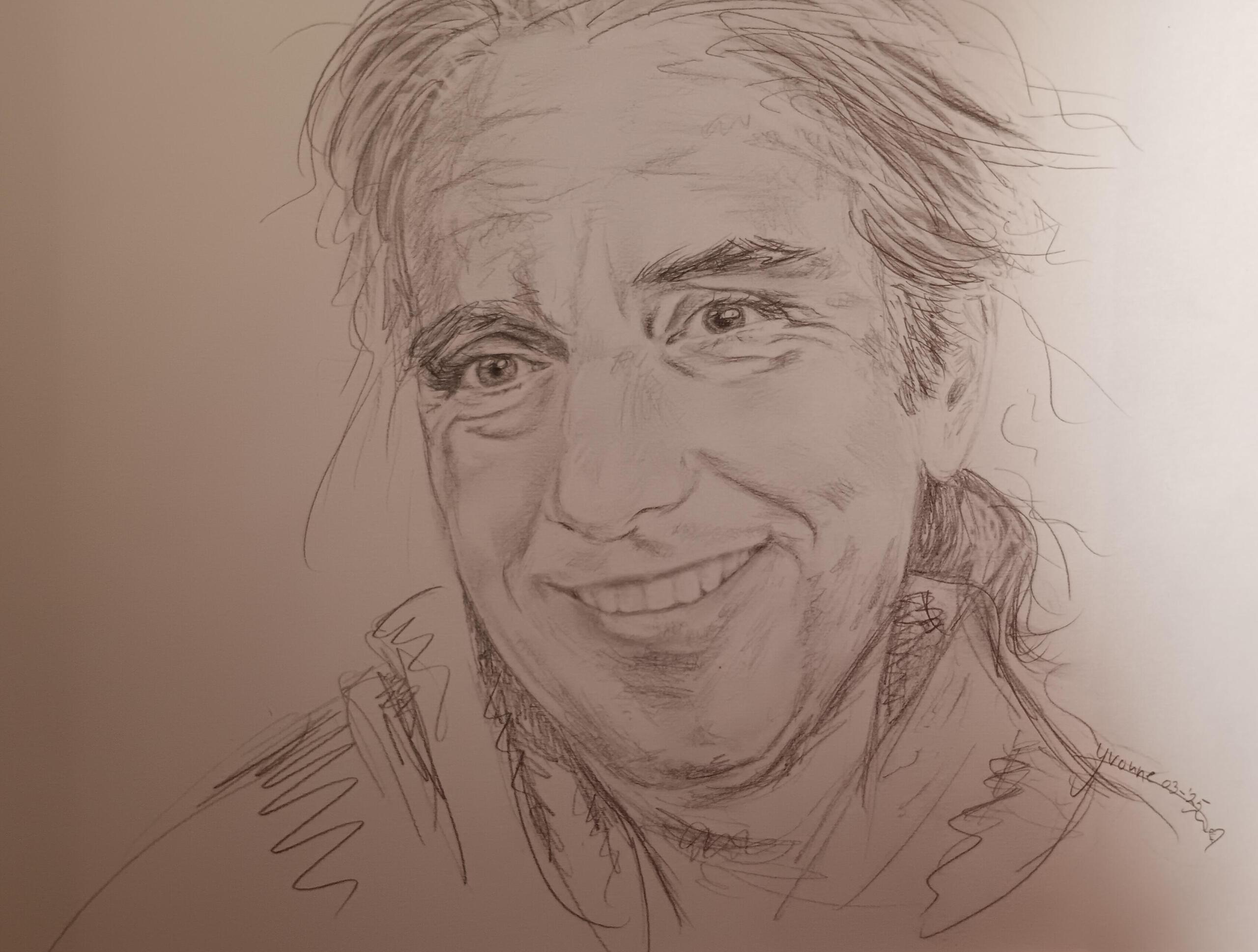 Yvonne (1970), Den Bosch, tekent portretten van foto. Zwart-wit, aquarelpotlood, realistisch of met extra.