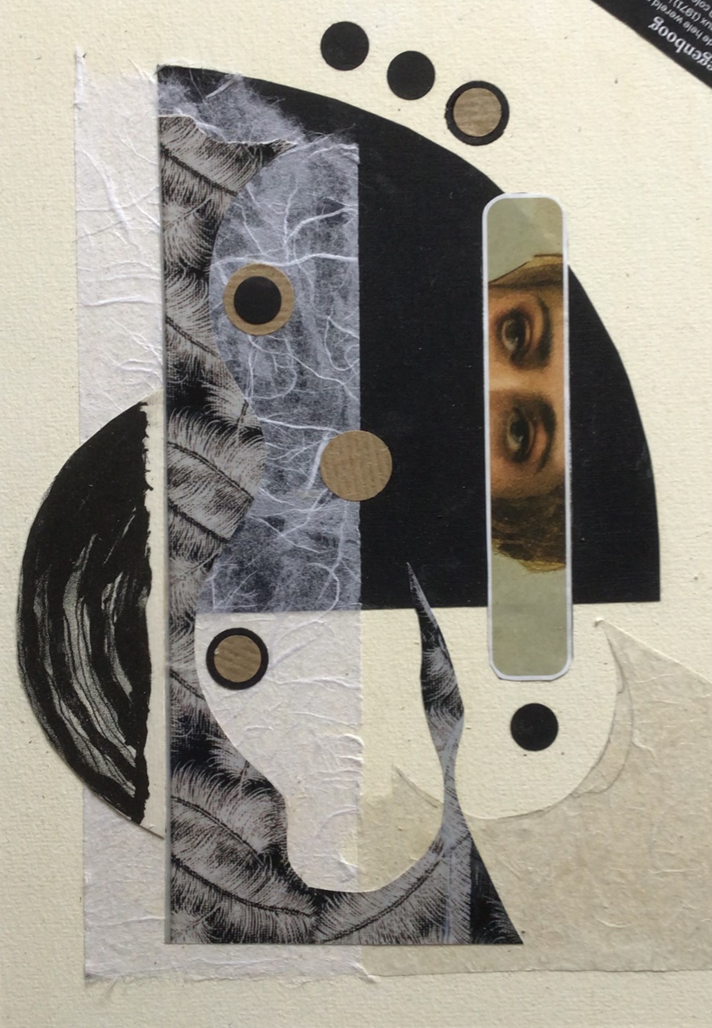 Collage Mixedmedia Abstract Ogen Grijs Cirkel Zwart