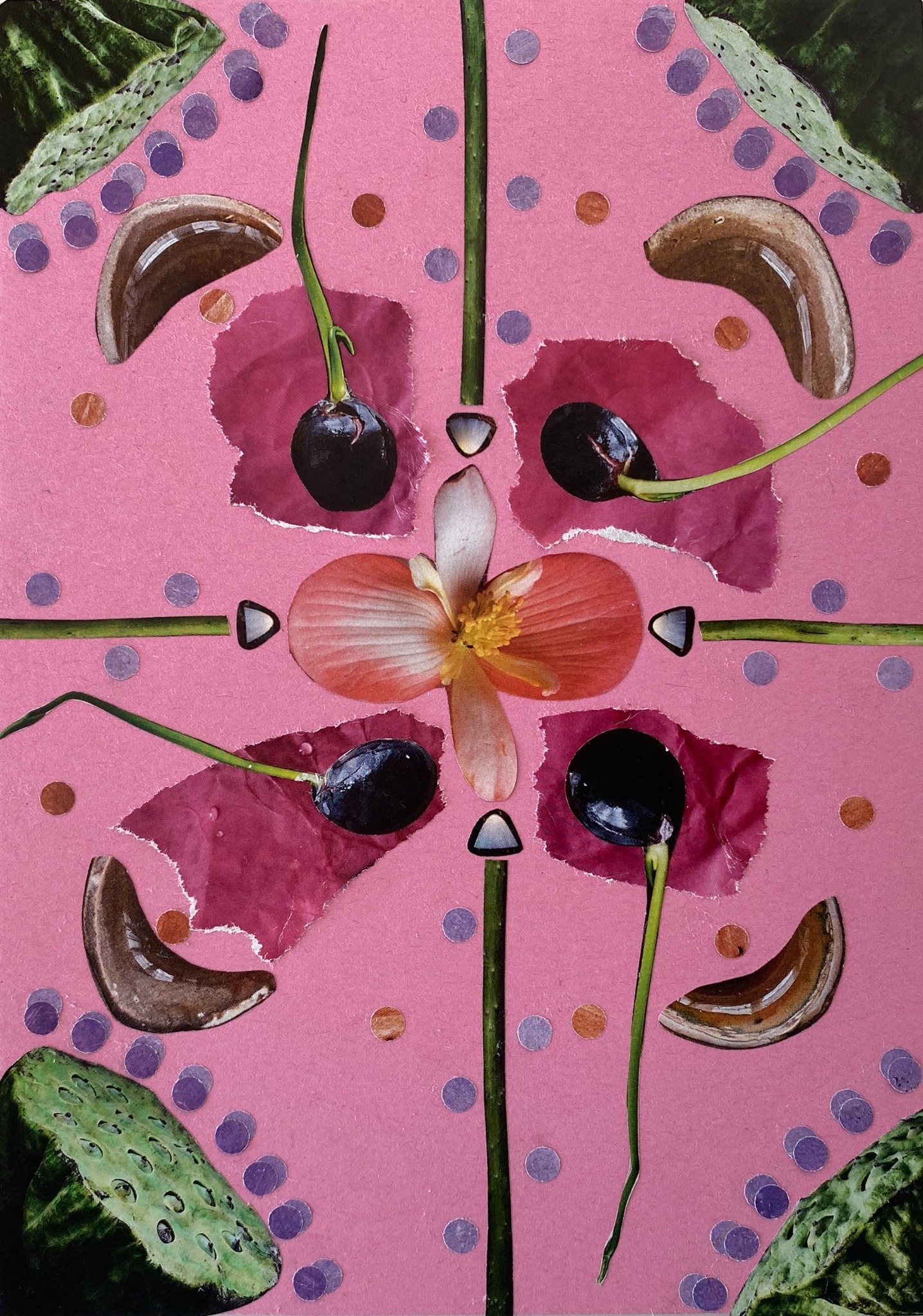 Ik maak papieren collages. Hiervoor gebruik ik tijdschriften, bij voorkeur de meer glossy uitgaven. Ik volg mijn intuïtie en gebruik mijn verstand bij het oplossen van 'problemen' in de verbinding van de papieren onderdelen.