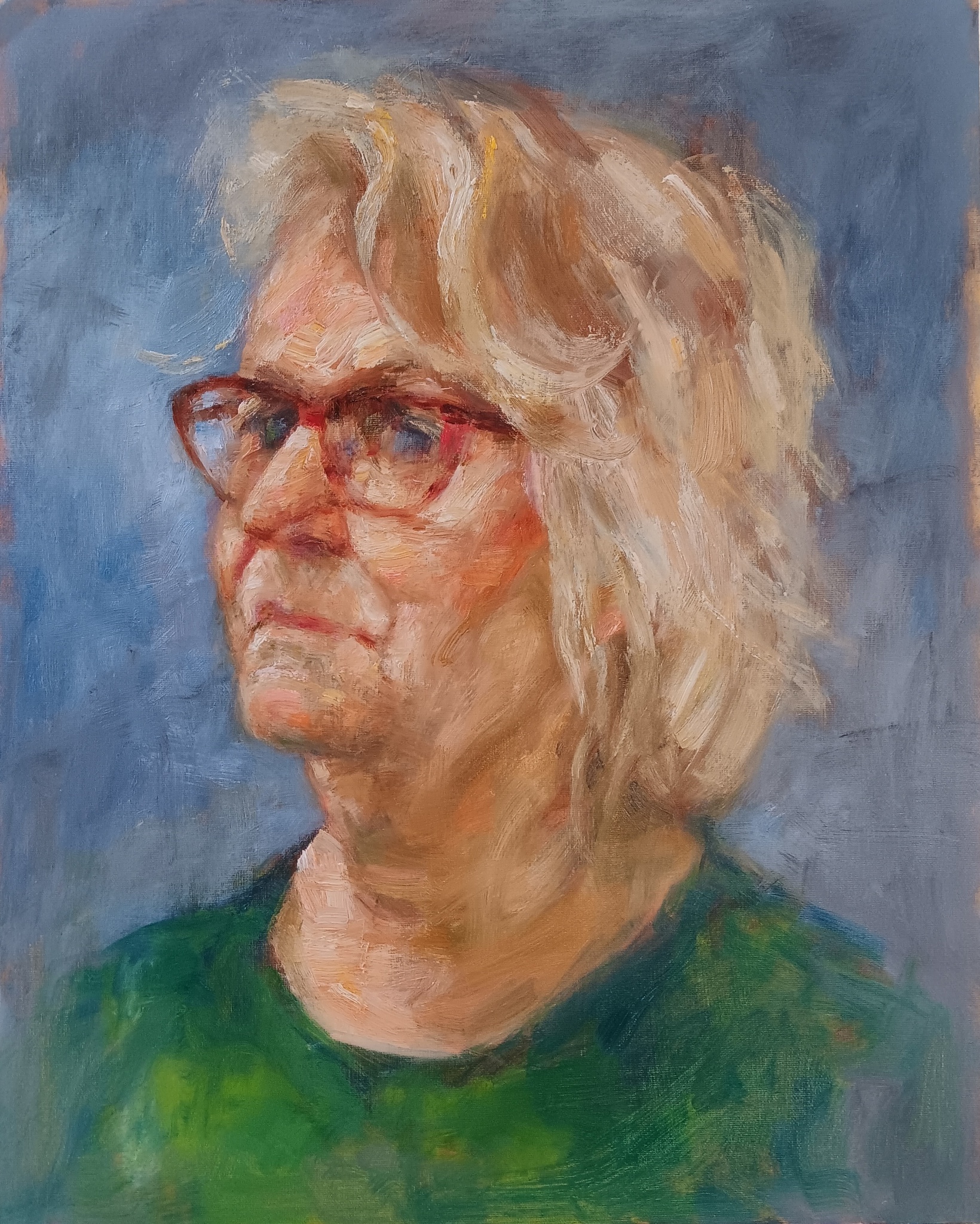Portret naar model geschilderd. Deze sessie was bijzonder omdat Els een oud klasgenoot van mij is. Lagere school Ewijk. 1 x per 14 dagen schilderen we met een groepje kunstenaars naar model.