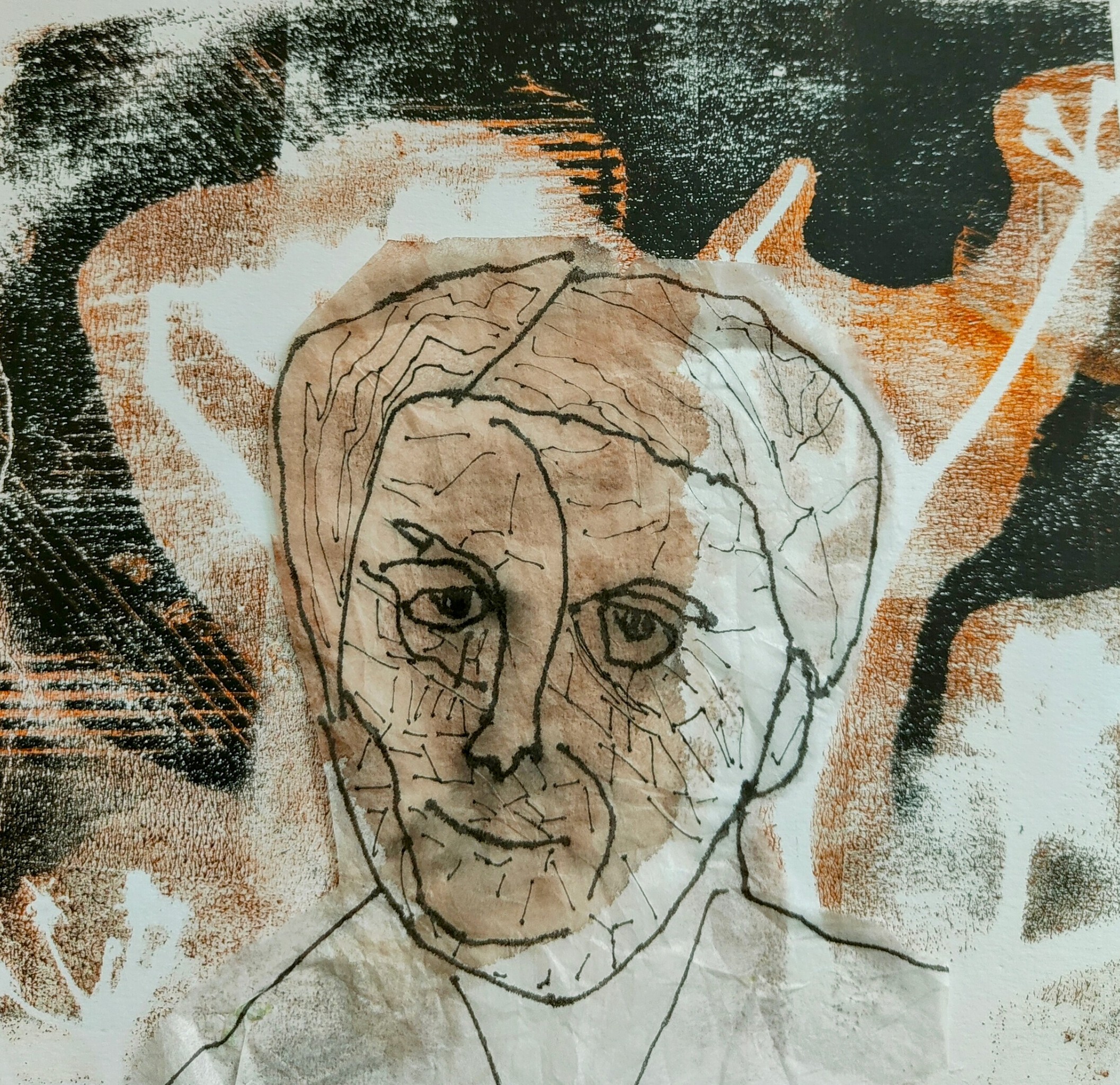 Serie van 12. Collage eigen werk, monoprint, tekenen op oude wadden vaarkaart uit 1957, gevonden bij een kringloopwinkel