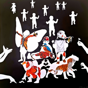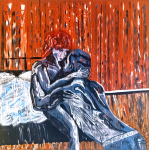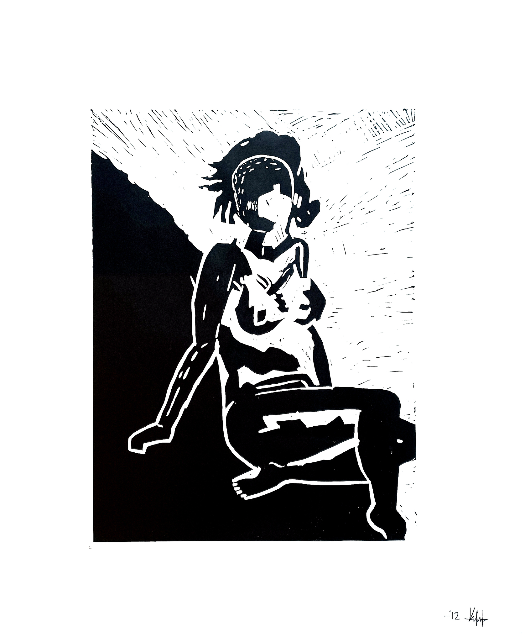 Dit werk is een lino print, uit een matje gegutst.