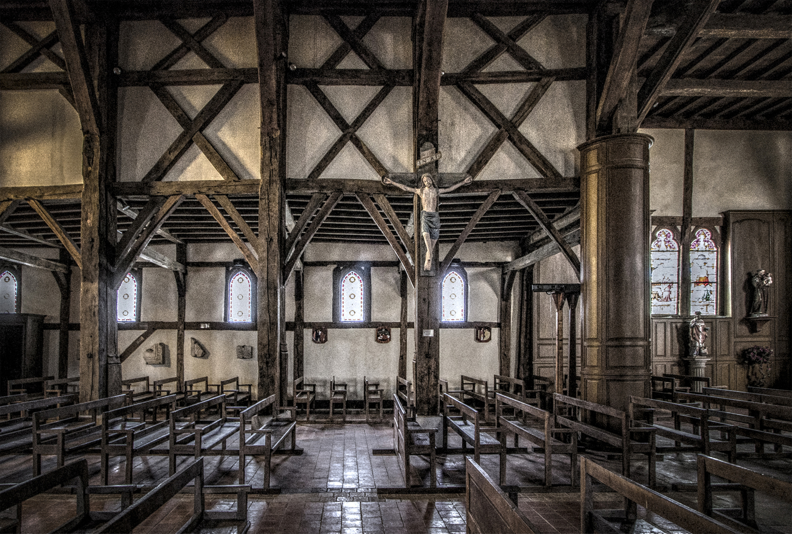Interieur van kerk in Outines (fr).