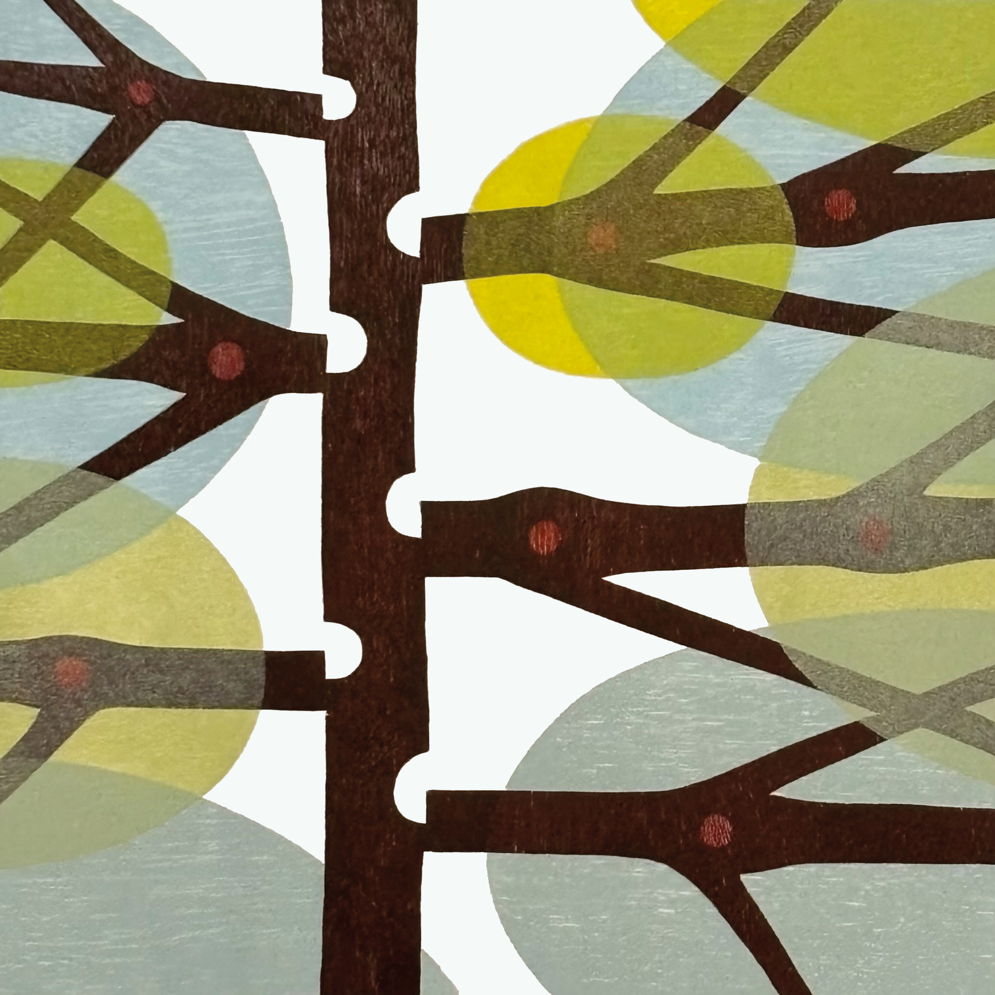 Boom badend in licht - Houtdruk - sjabloondruk op papier, 6 kleuren, oplage 3.
