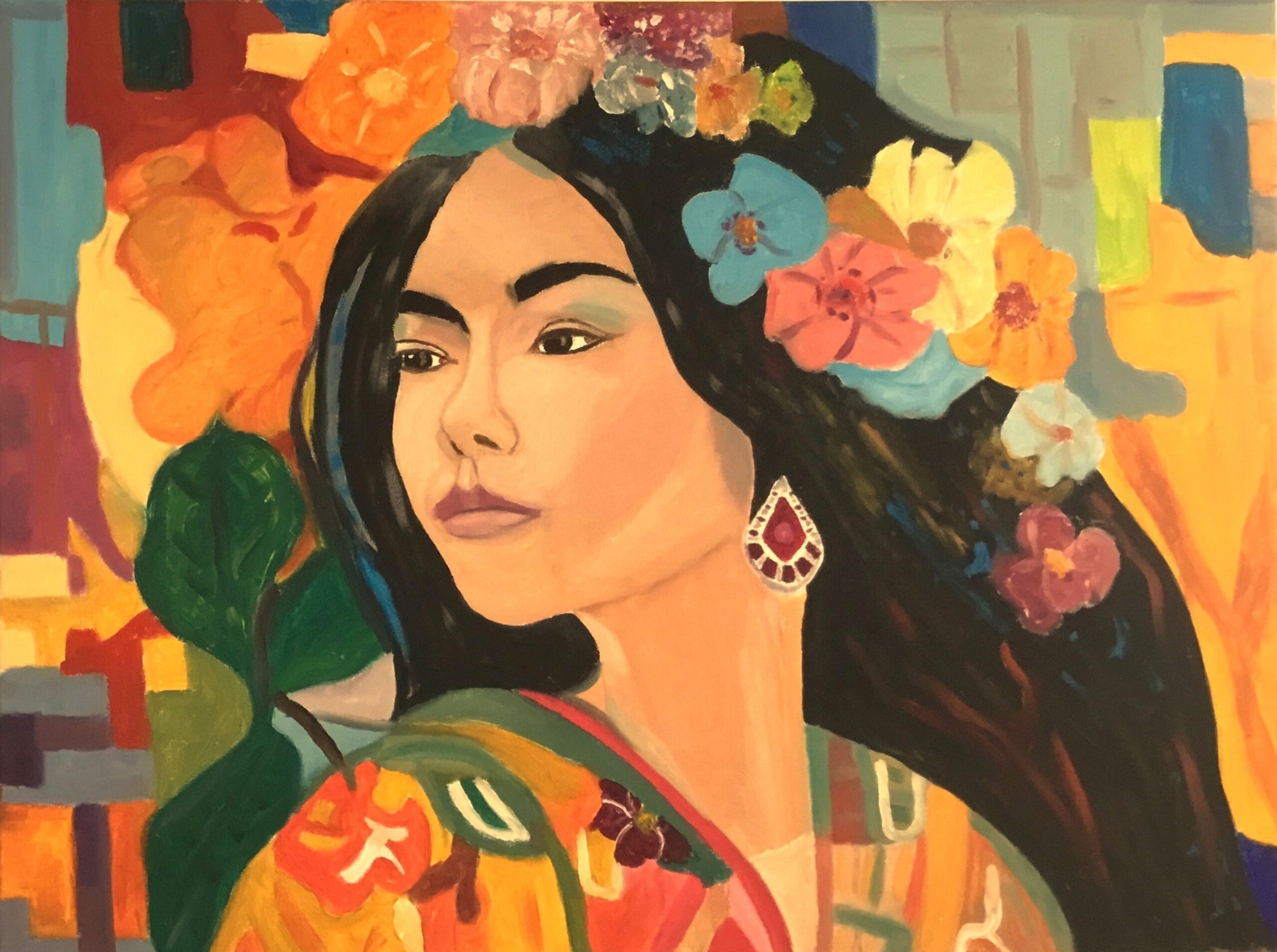 Schilder van portretten in een realistisch moderne stijl De portretten op zich zijn gelijkend aan het model , maar invulling van kleur en achtergrond zijn mijn eigen keuze , kleurrijk en speels