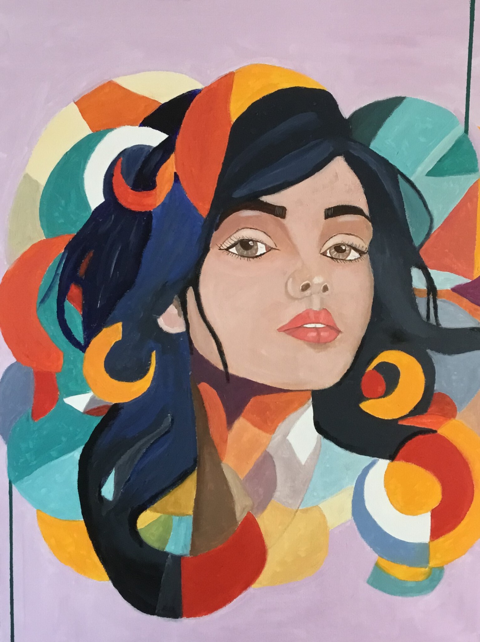 Schilder van portretten in een realistisch moderne stijl De portretten op zich zijn gelijkend aan het model , maar invulling van kleur en achtergrond zijn mijn eigen keuze , kleurrijk en speels