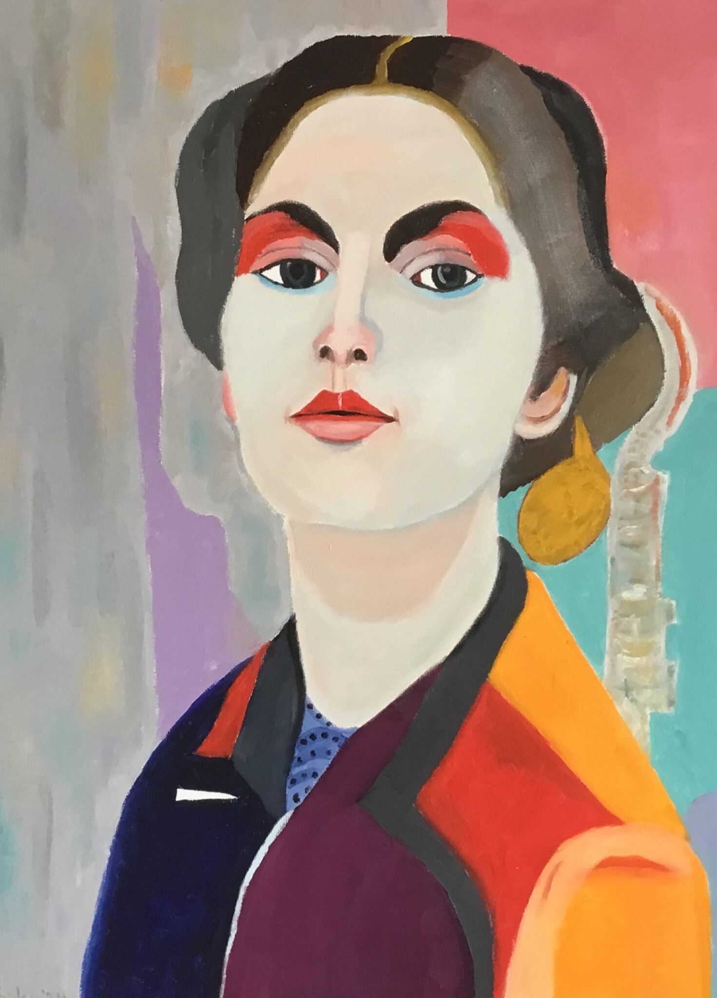 Schilder van portretten in een realistisch moderne stijl De portretten op zich zijn gelijkend aan het model , maar invulling van kleur en achtergrond zijn mijn eigen keuze , kleurrijk en speels