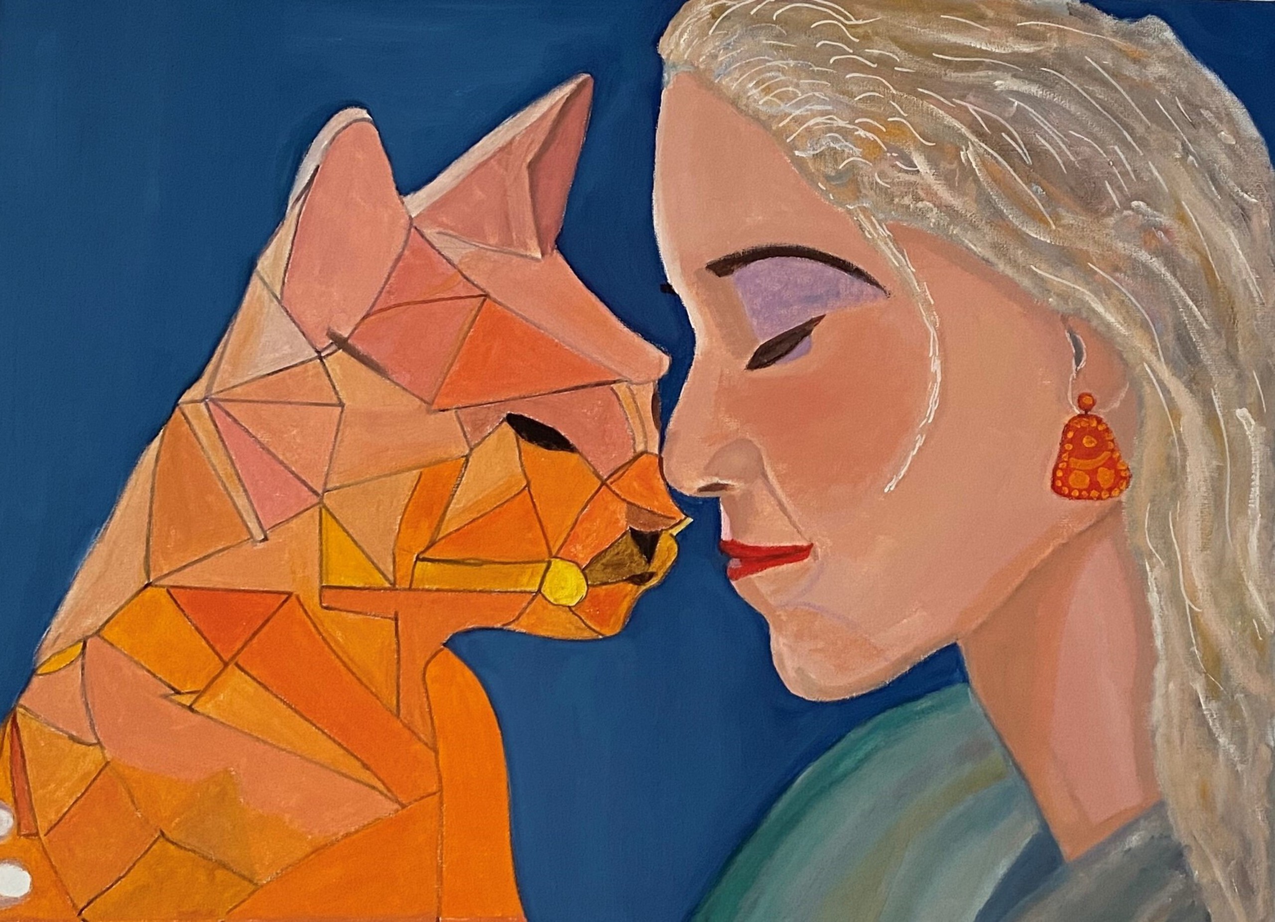 Schilder van portretten in een realistisch moderne stijl De portretten op zich zijn gelijkend aan het model , maar invulling van kleur en achtergrond zijn mijn eigen keuze , kleurrijk en speels