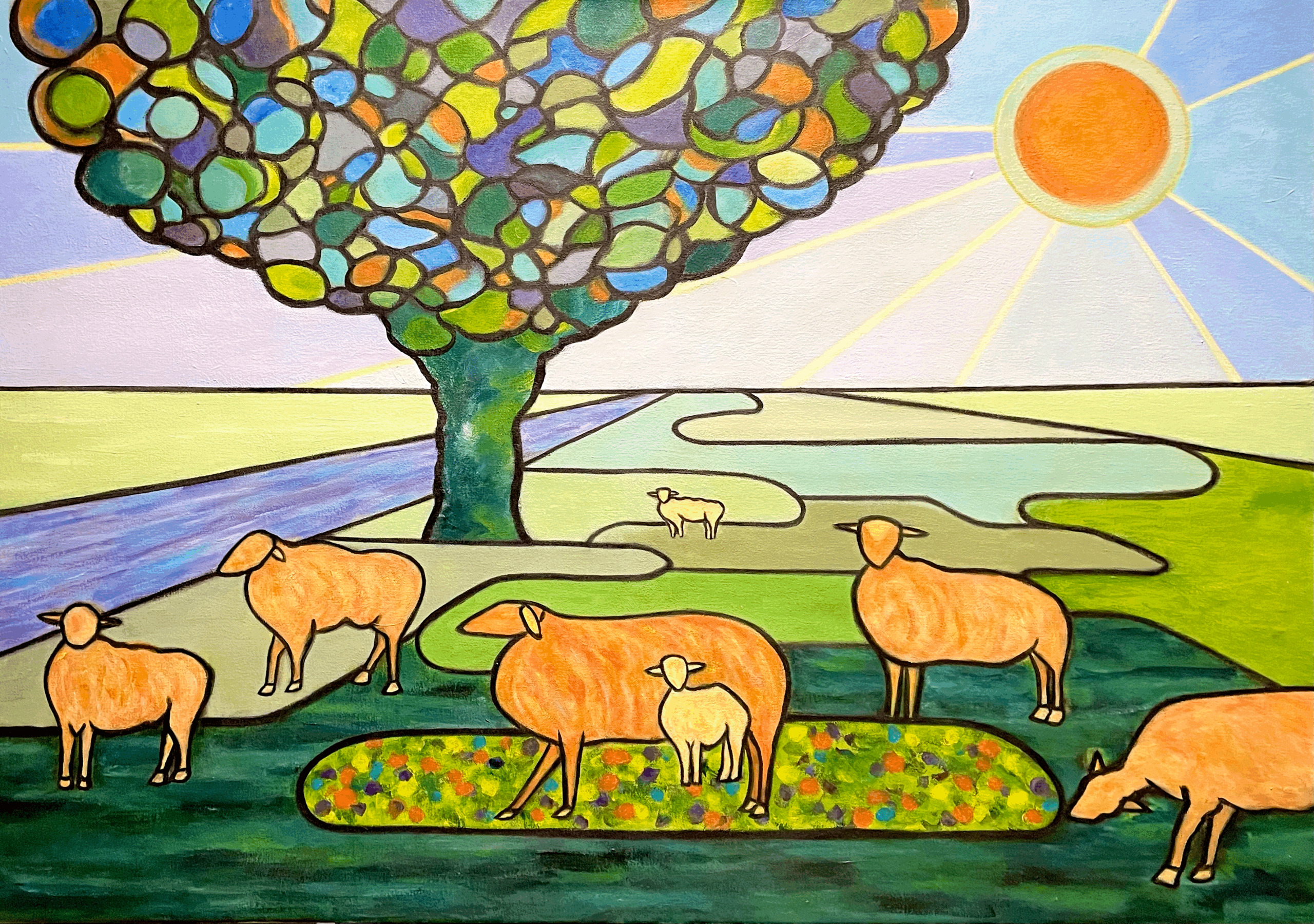 Zon Landschap Weiland Zonnig Fantasie Schaap Schapen Lam Weide Wei Lammetje Lammeren
